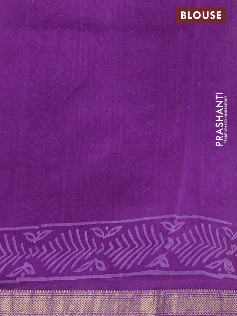 Chanderi bagru saree violet with allover prints and mageshwari border