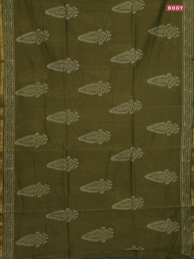 Chanderi bagru saree sap green with butta prints and small zari woven border