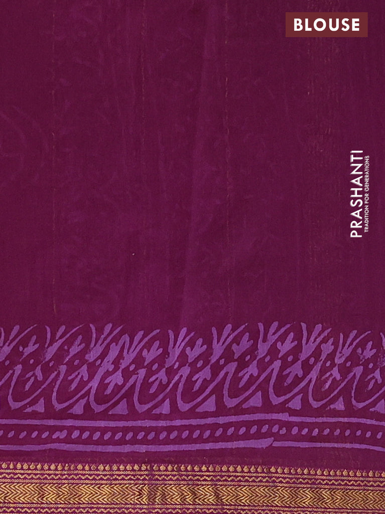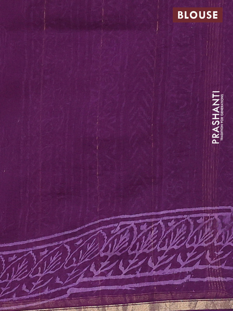 Chanderi bagru saree purple with allover prints and mageshwari border