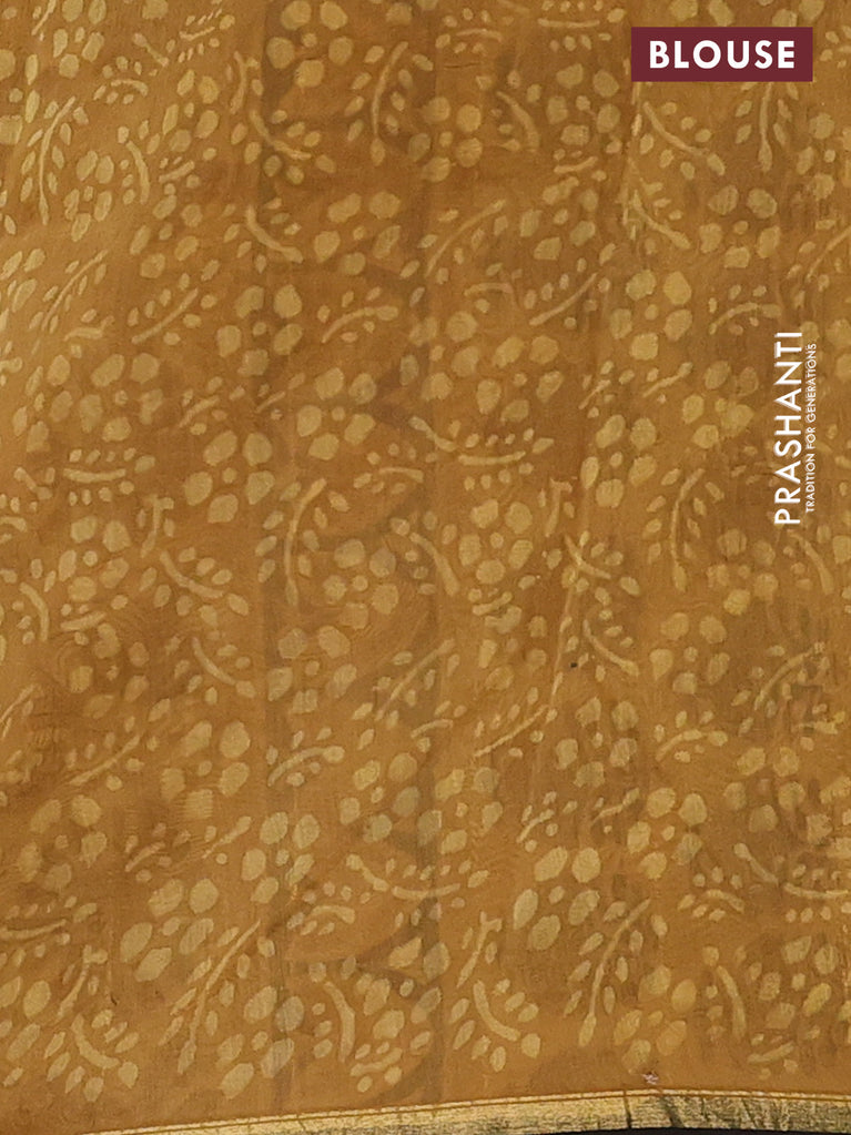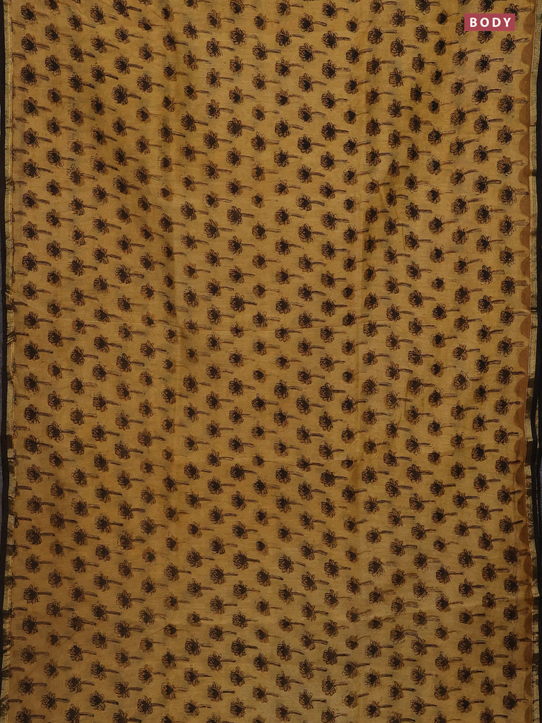 Chanderi bagru saree sandal and brown with allover floral butta prints and small zari woven border