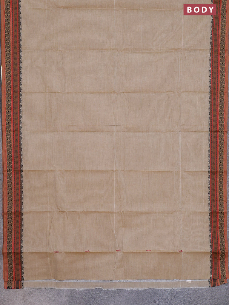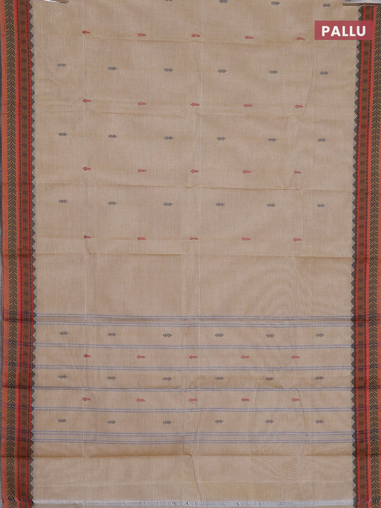Chettinad cotton saree beige and brown with thread woven buttas and thread woven border