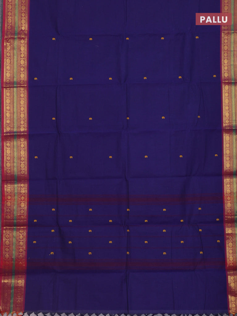 Chettinad cotton saree blue and maroon with thread woven buttas and zari woven border