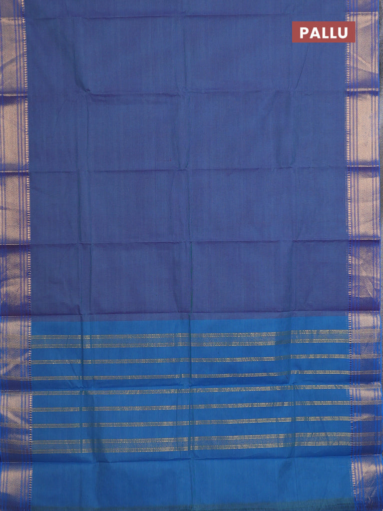 Chettinad cotton saree blue and dual shade of bluish maroon with plain body and long rettapet thread woven border