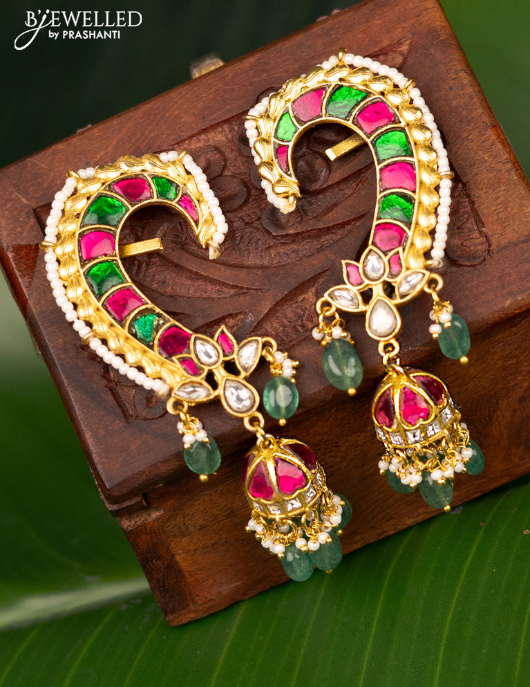 Antique earcuff jhumka with jadau kundan stones and pearl & beads hanging