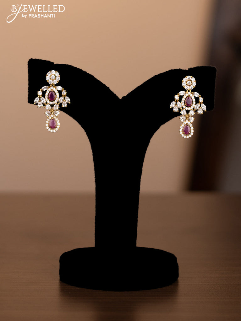 Antique earing flower design with kemp & cz stones and pearl hangings