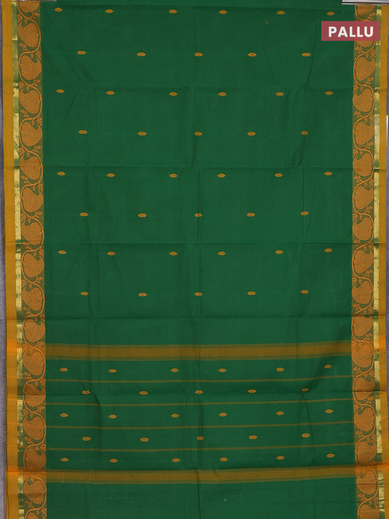 Chettinad cotton saree green and yellow with thread woven buttas and thread & zari woven border