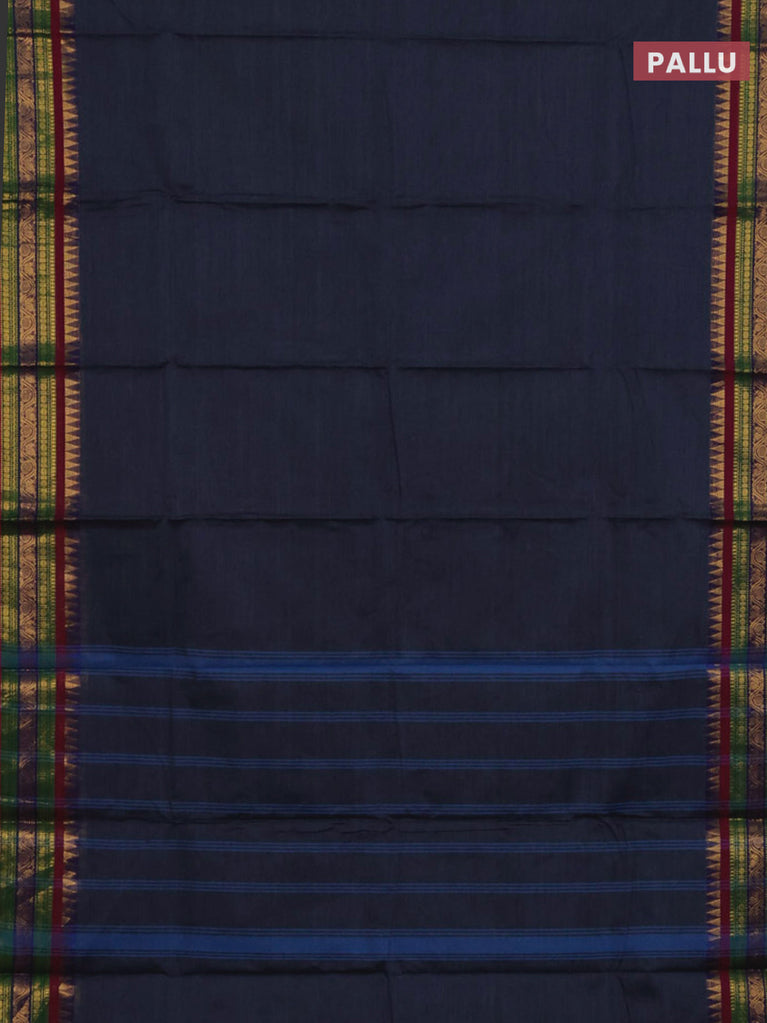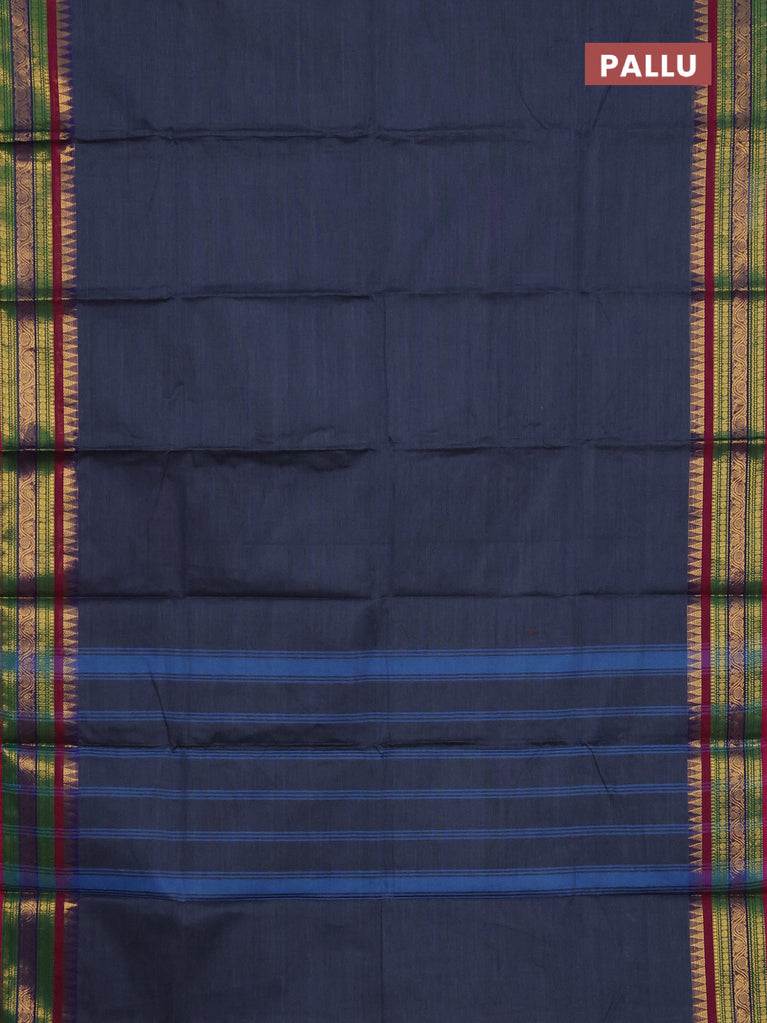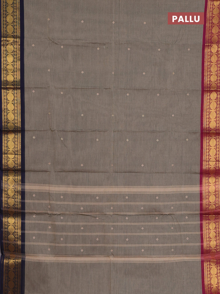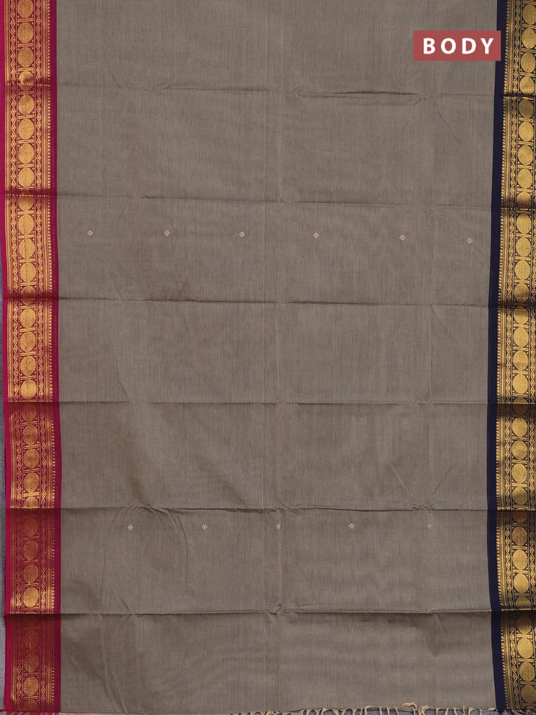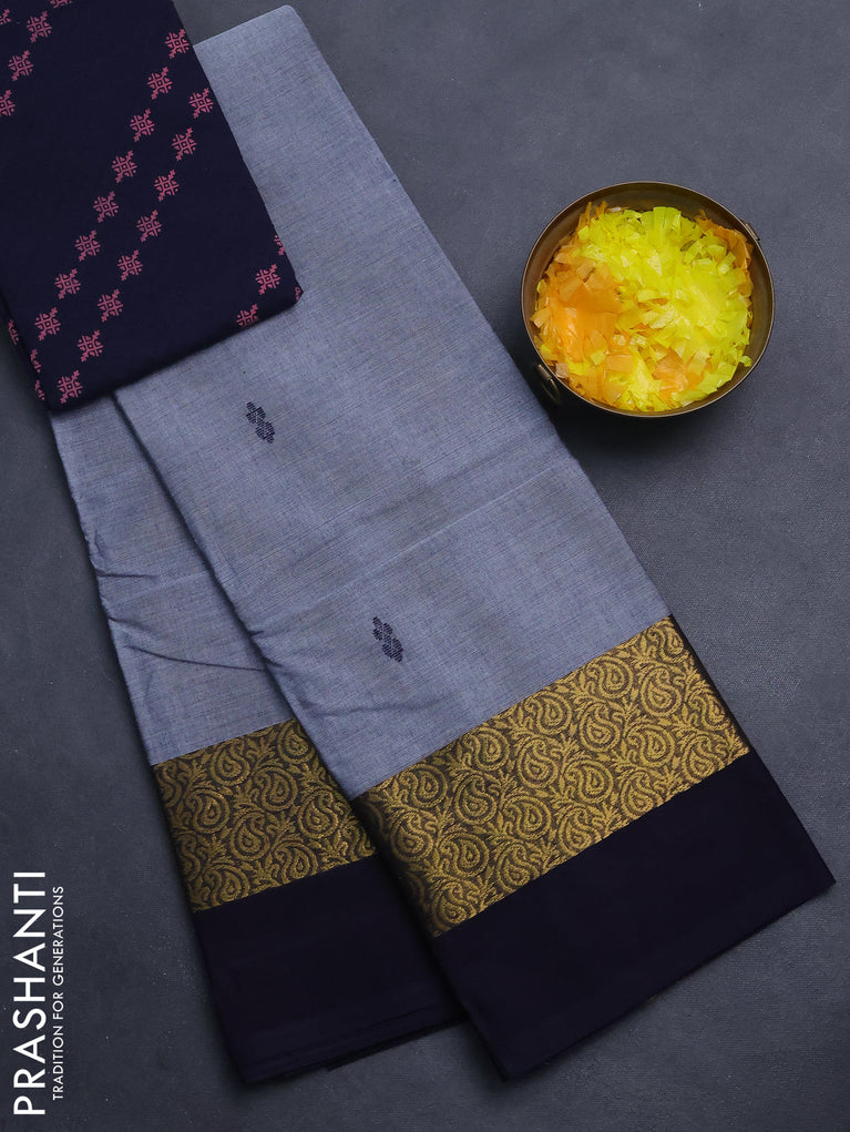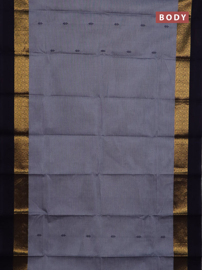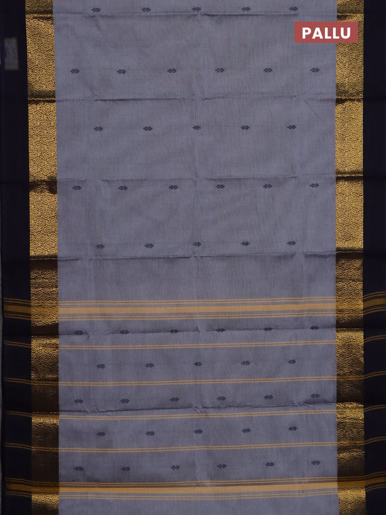 Chettinad cotton saree grey and navy blue with thread woven buttas and zari woven simple border