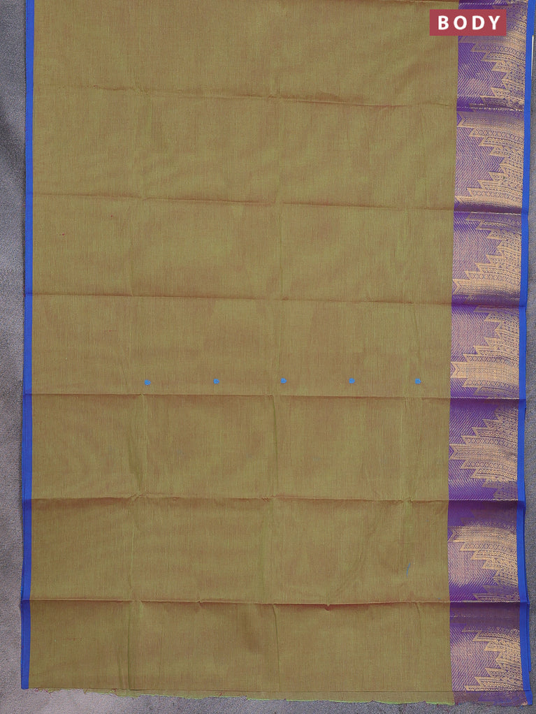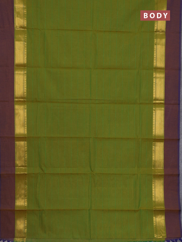 Chettinad cotton saree light green and dual shade of blue with thread woven buttas and zari woven simple border