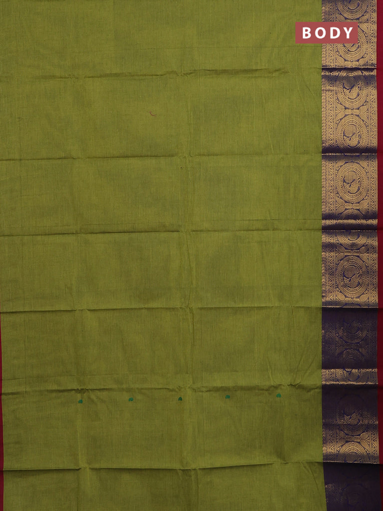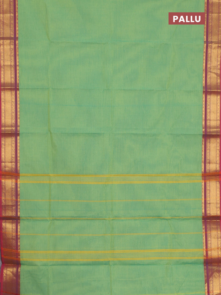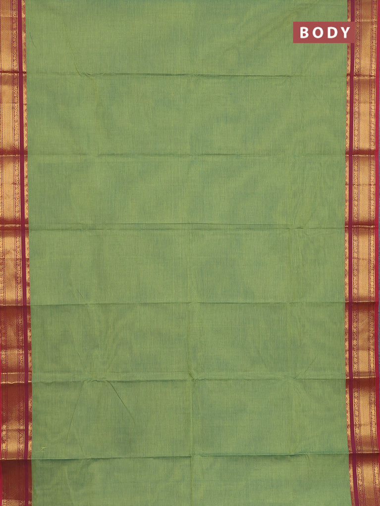 Chettinad cotton saree light green and maroon with thread woven buttas and long zari woven border