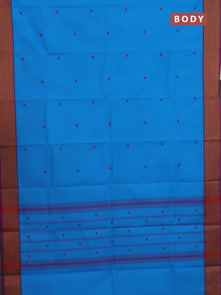 Chettinad cotton saree light blue and magenta pink with thread woven buttas and thread woven border