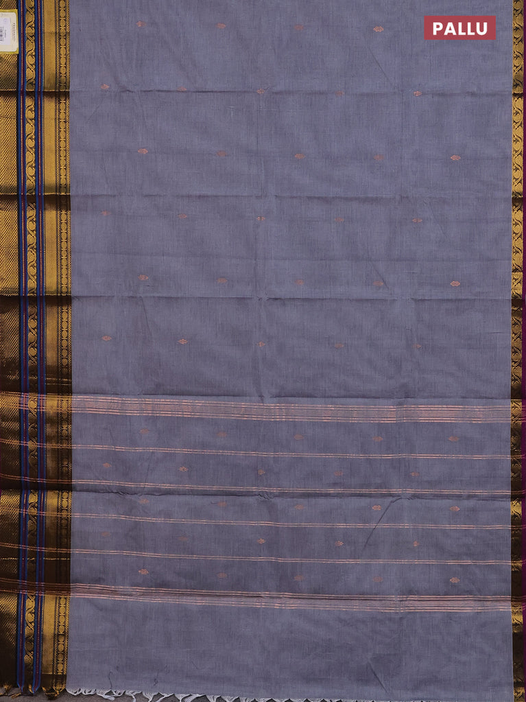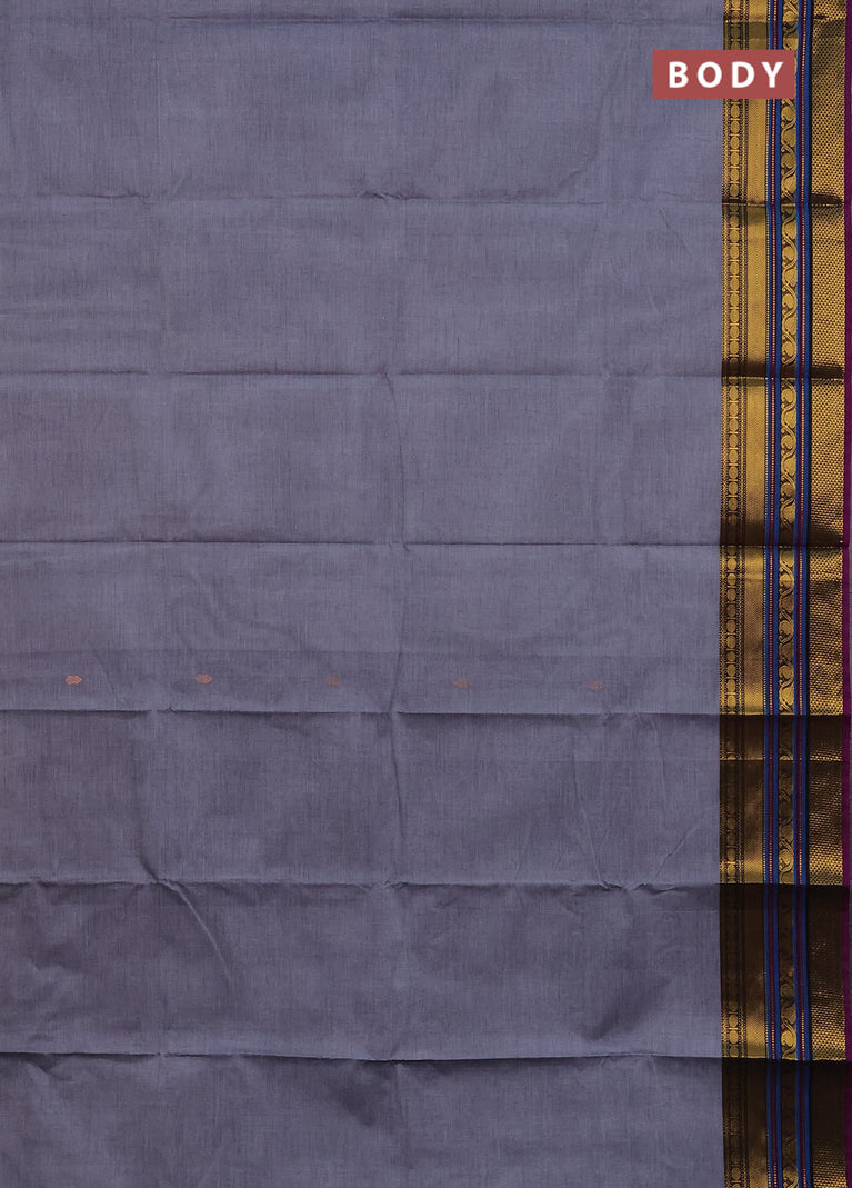 Chettinad cotton saree grey and purple with zari woven buttas and zari woven border