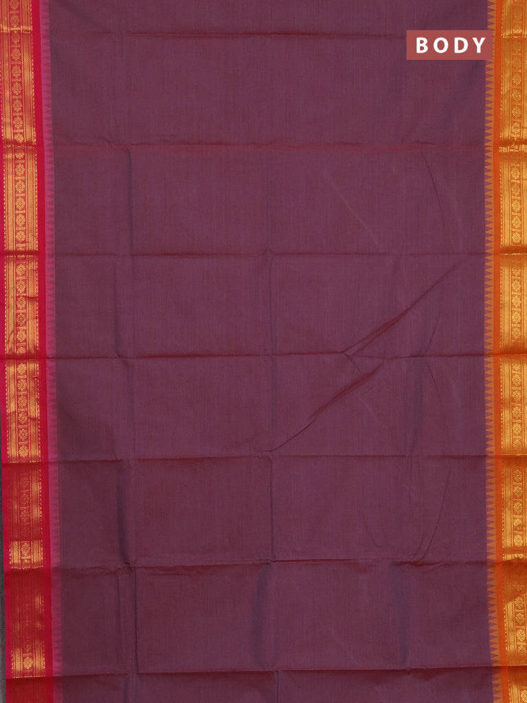 Chettinad cotton saree mauve pink and deep coffee brown with thread woven buttas and zari woven border