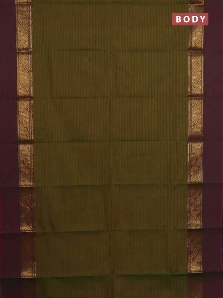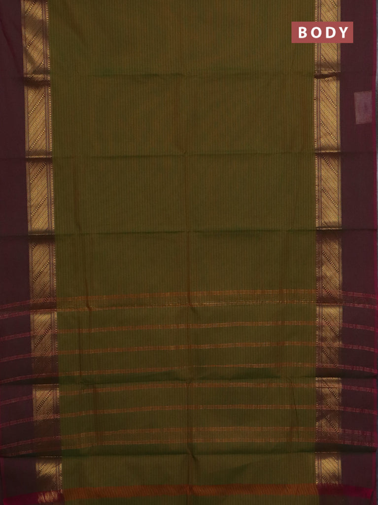Chettinad cotton saree mustard green and dual shade of dark pink with allover stripe pattern and zari woven simple border