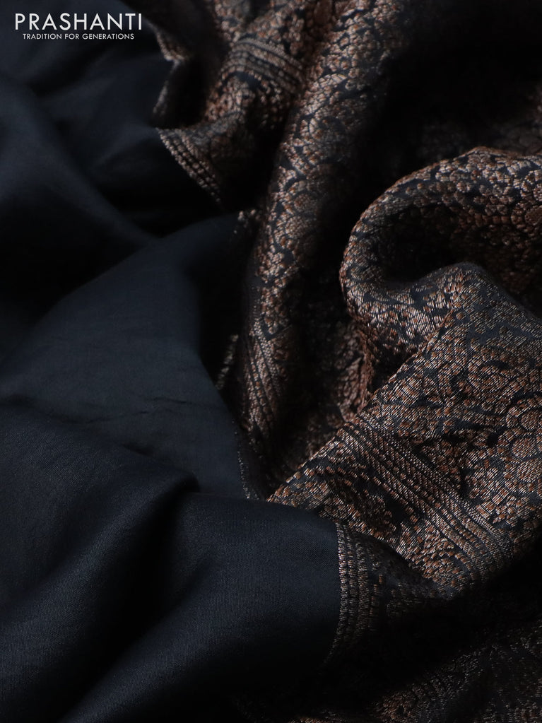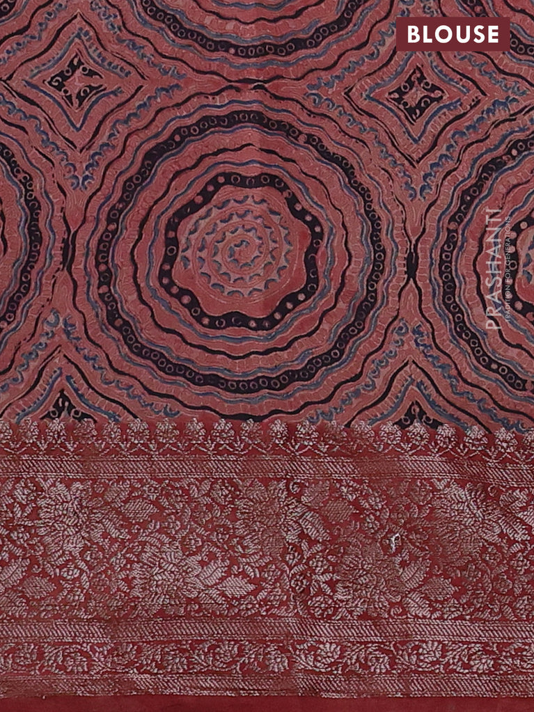 Chiniya silk saree brown with allover woven buttas & kalamkari digital prints and banarasi style border