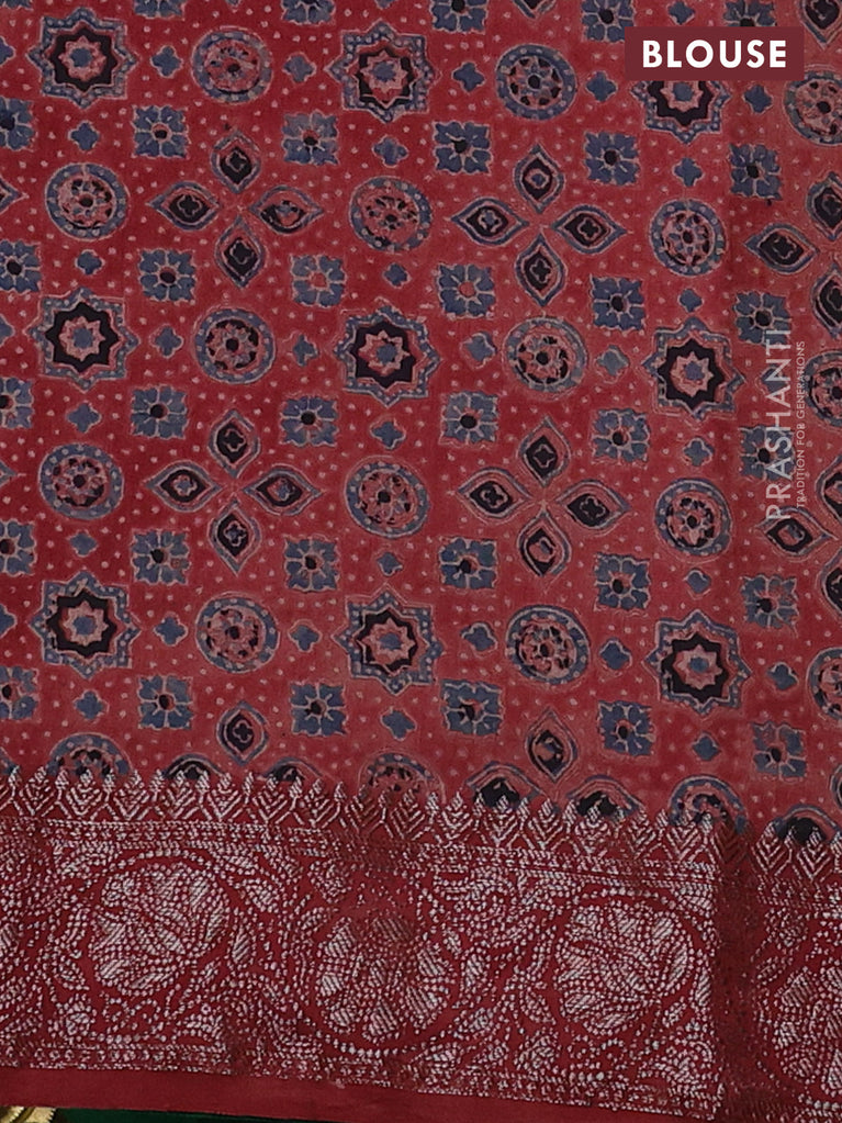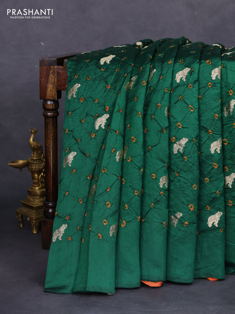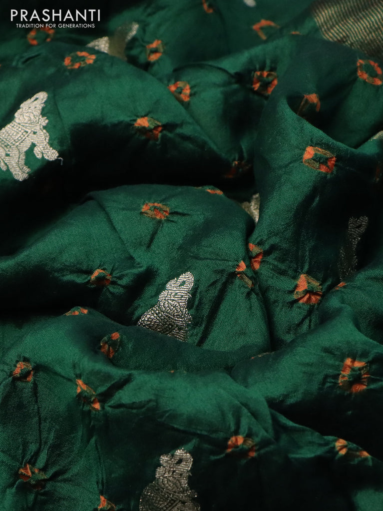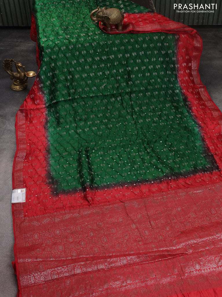 Chiniya silk saree green and red with allover bandhani prints & zari weaves and zari woven border