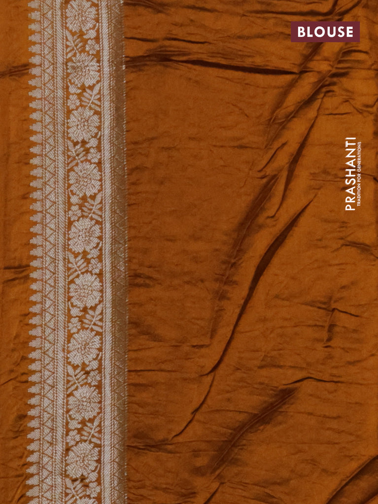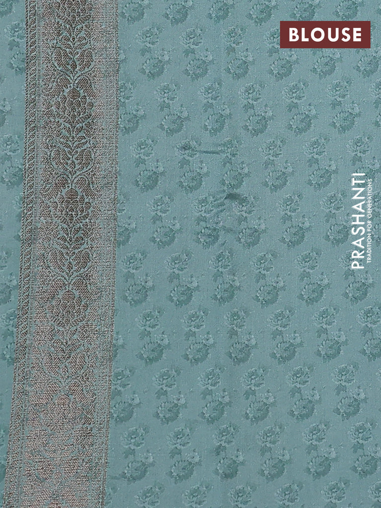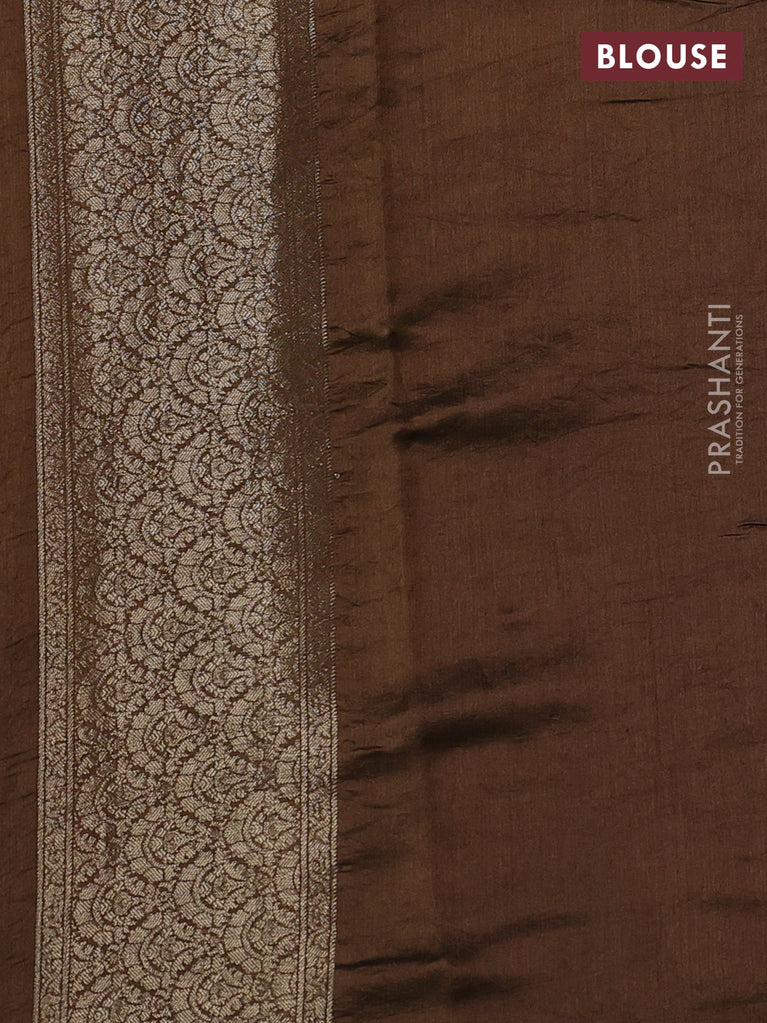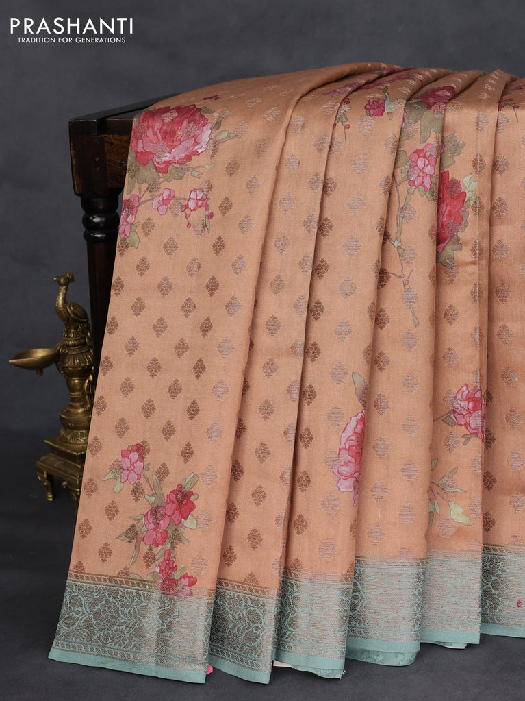 Chiniya silk saree dark sandal and pastel blue with woven buttas & digital prints and zari woven border