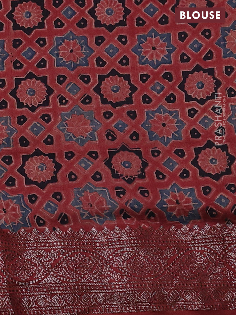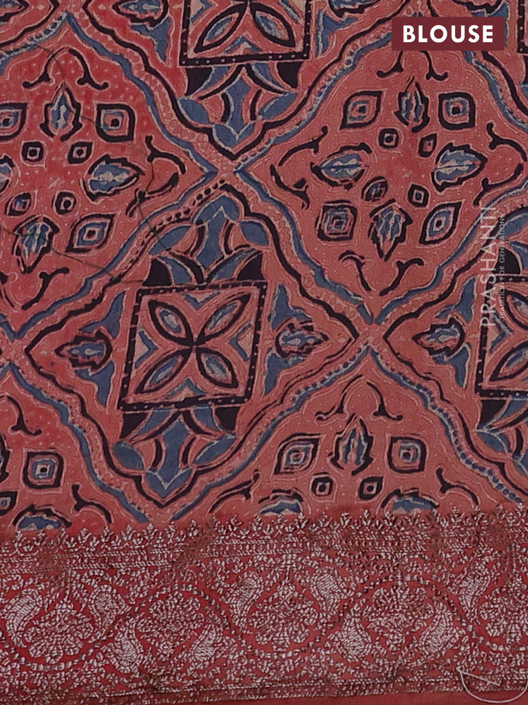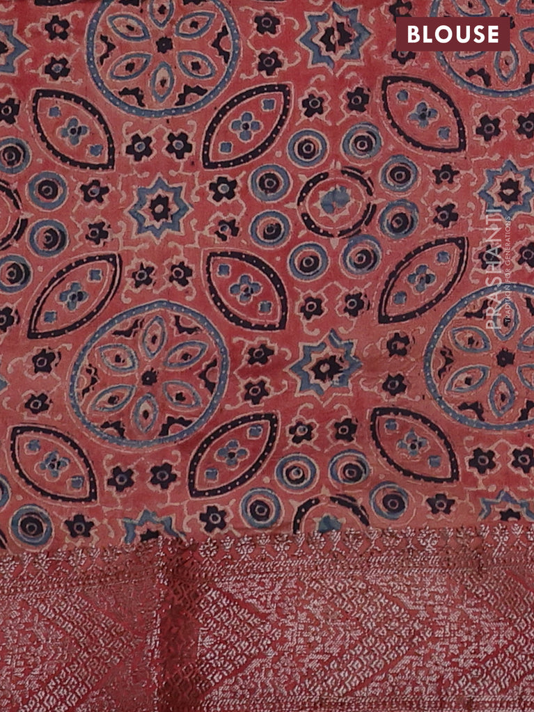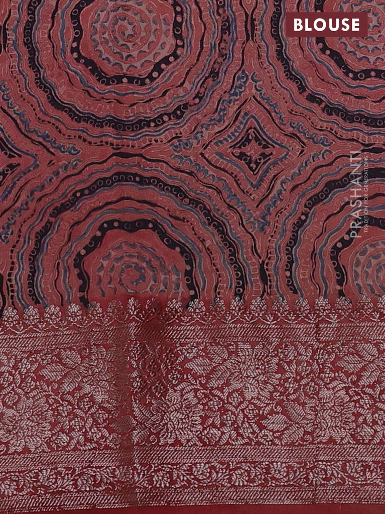 Chiniya silk saree dark sandal and pastel blue with woven buttas & digital prints and zari woven border