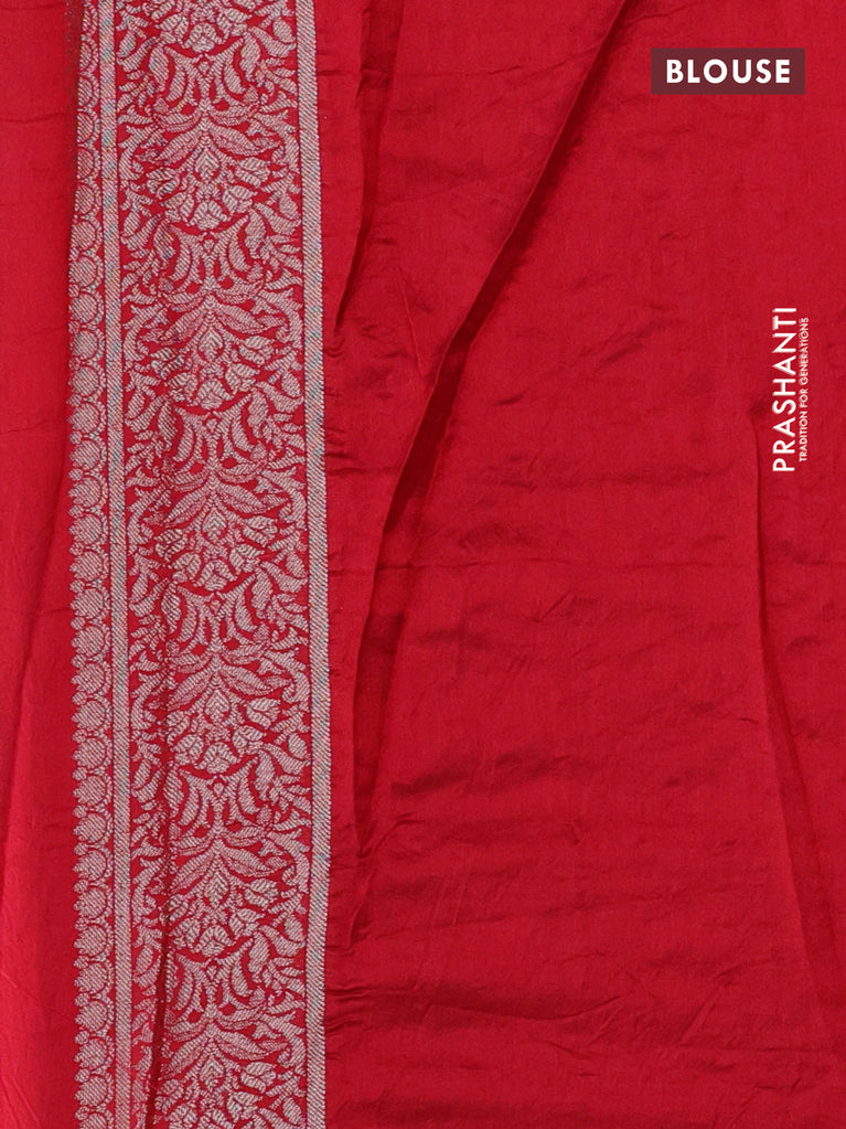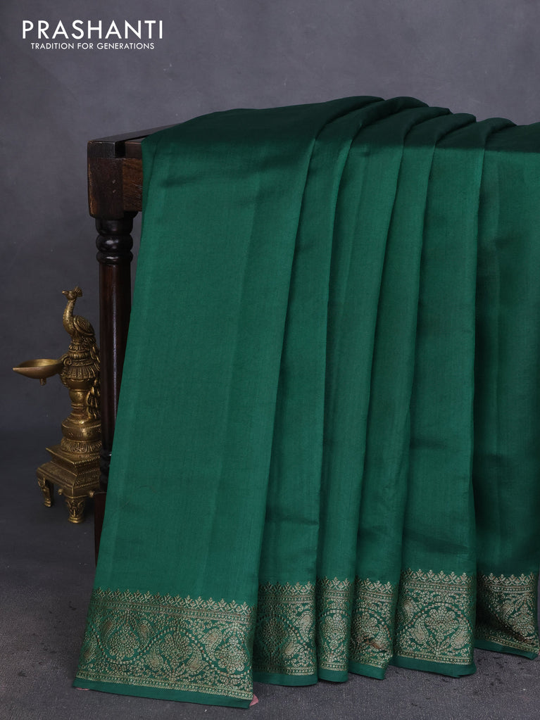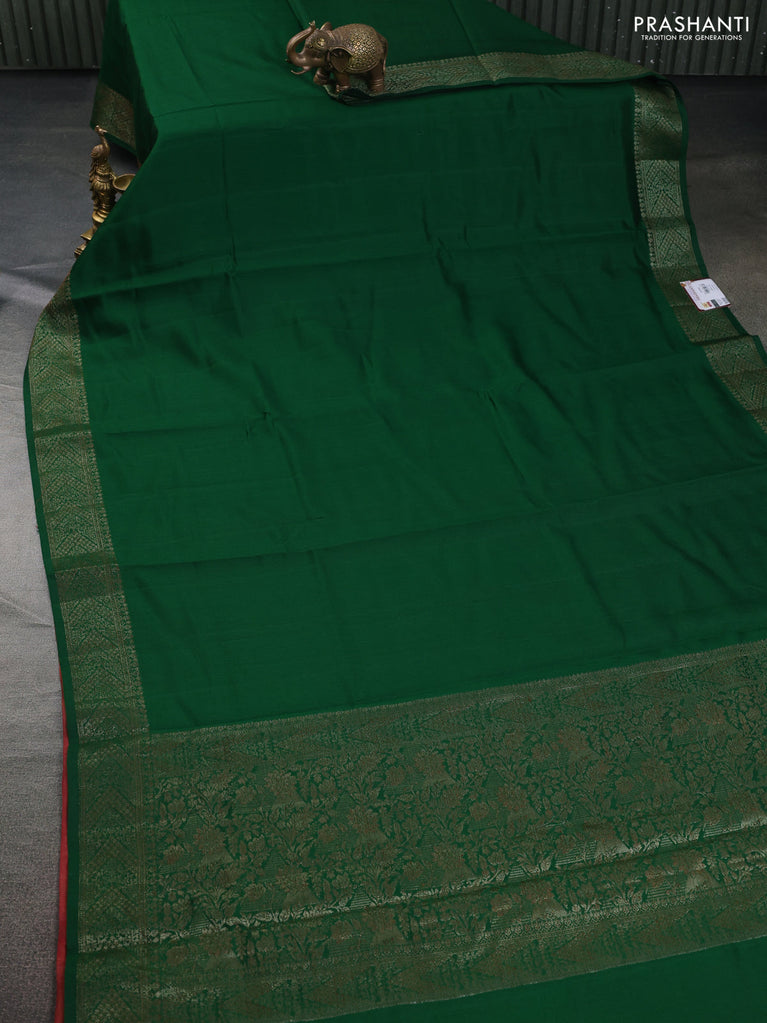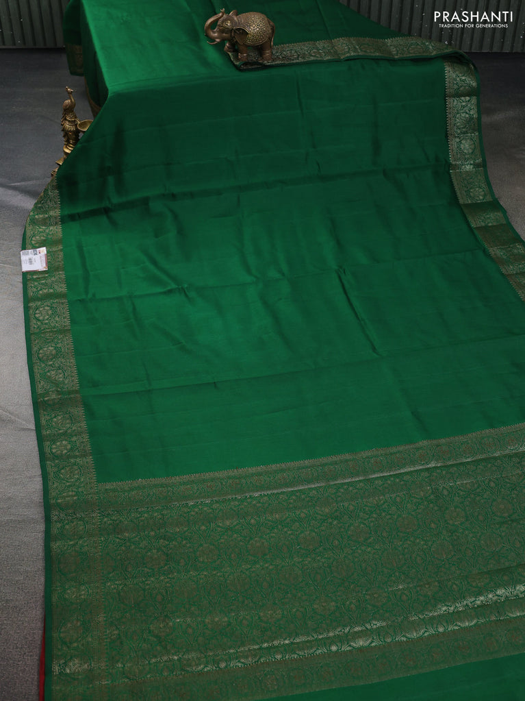 Chiniya silk saree green and red with parrot zari woven buttas and zari woven piping border