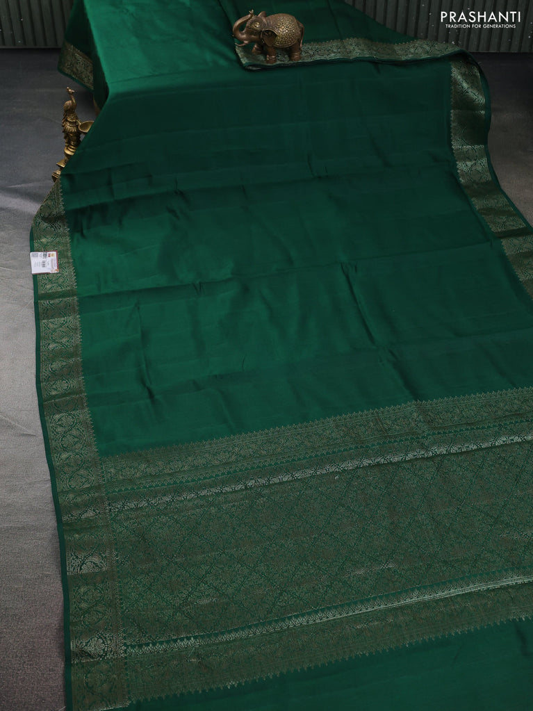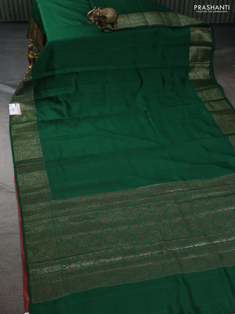 Chiniya silk saree green and red with pichwai zari woven buttas in borderless style