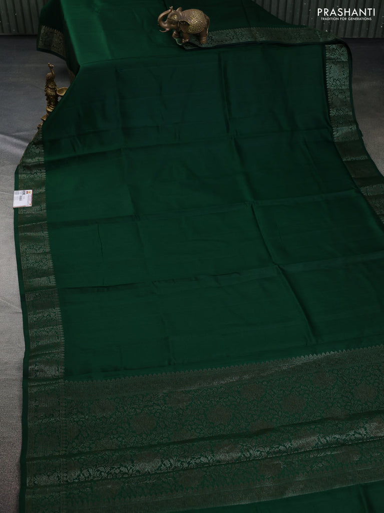 Chiniya silk saree green with allover zari weaves and zari woven simple border