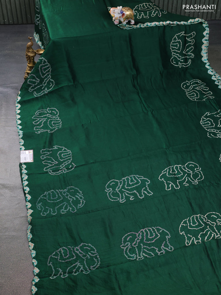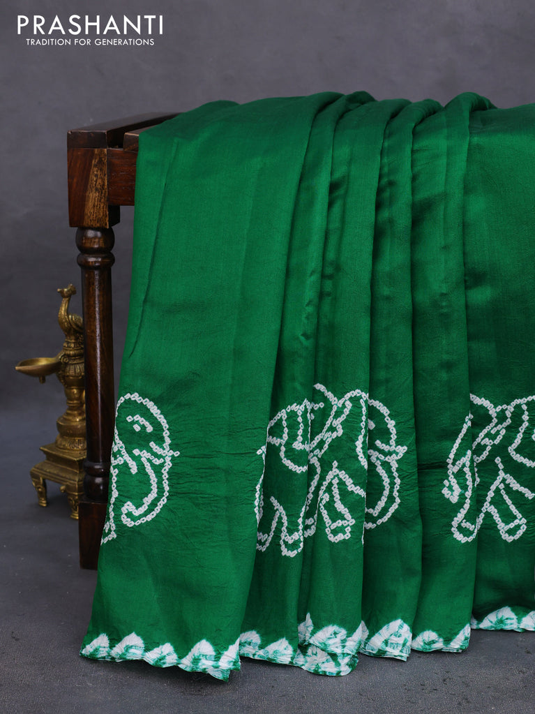 Chiniya silk saree green with zari woven floral buttas and zari woven border