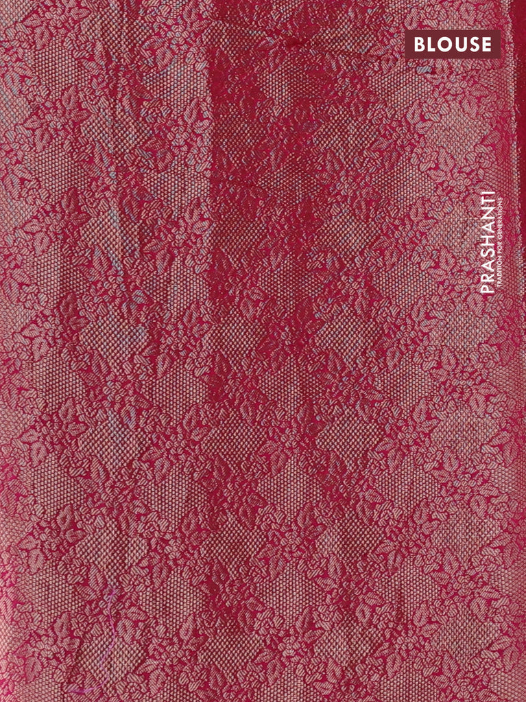 Chiniya silk saree rust shade with allover silver zari buttas & bandhini prints and silver zari woven border