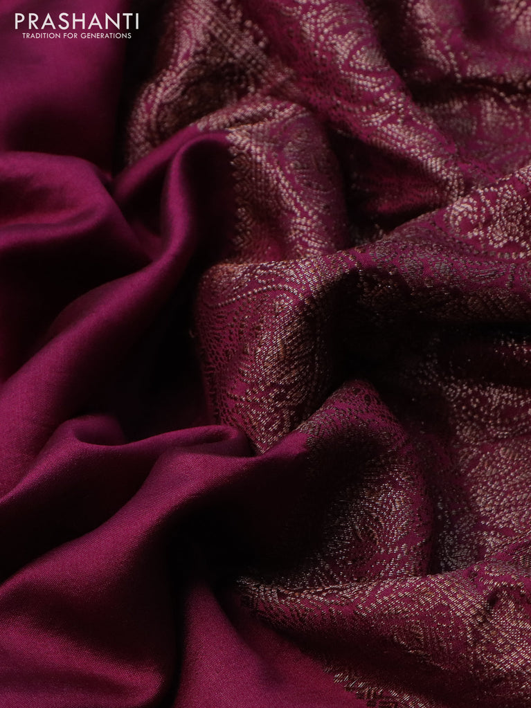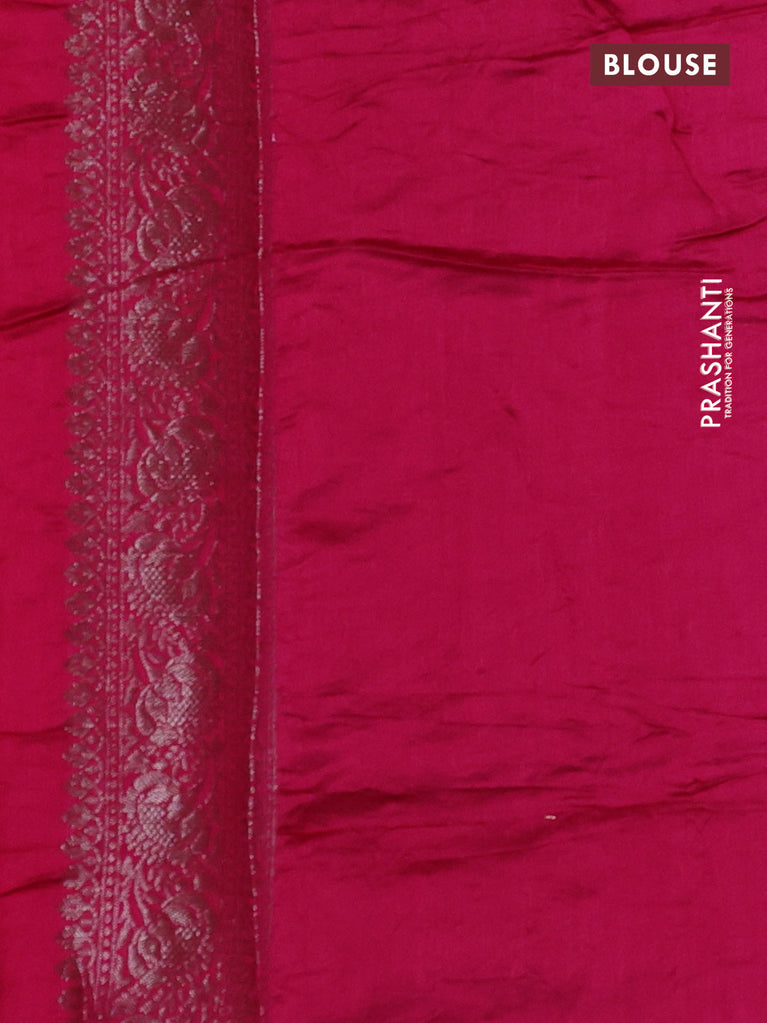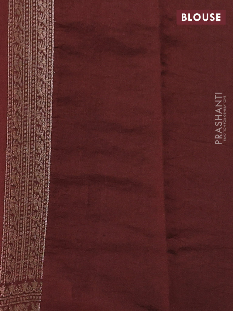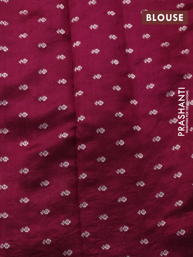 Chiniya silk saree wine shade with allover silver zari buttas & bandhini prints and silver zari woven border