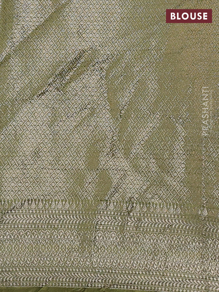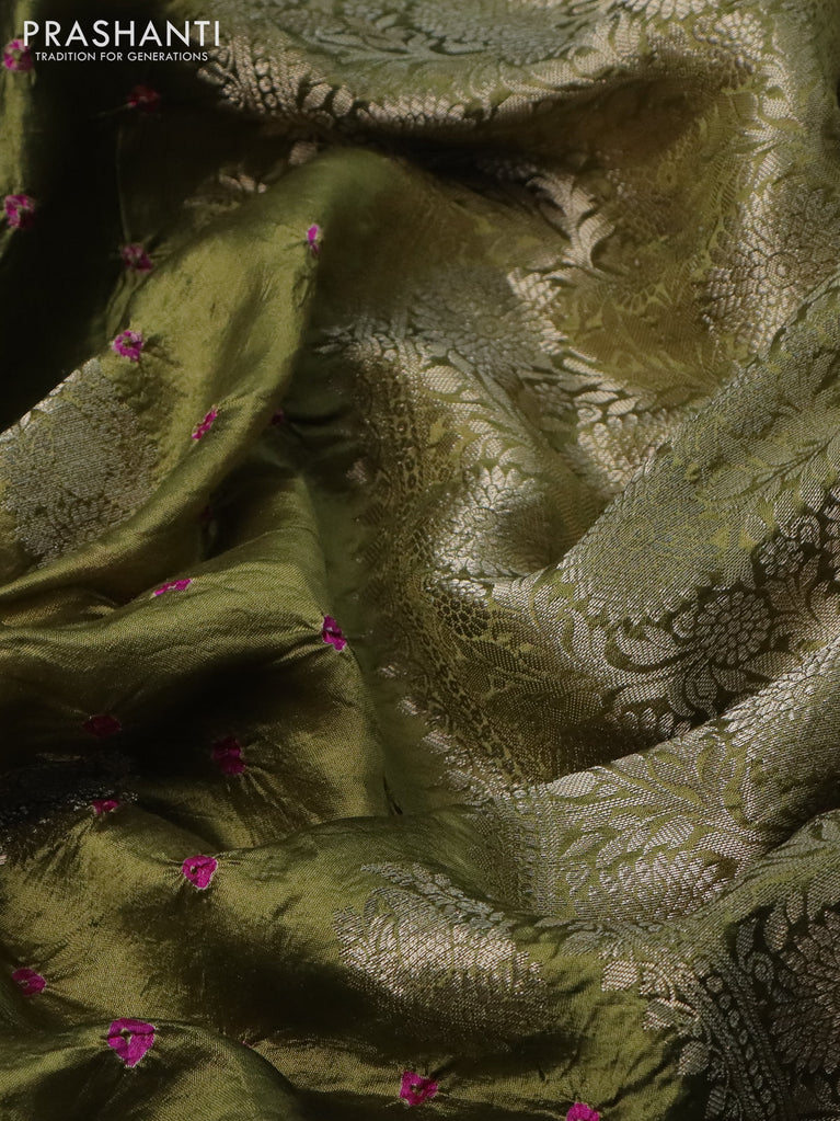 Chiniya silk saree purple and mehendi green with allover zari buttas & bandhini prints in borderless style