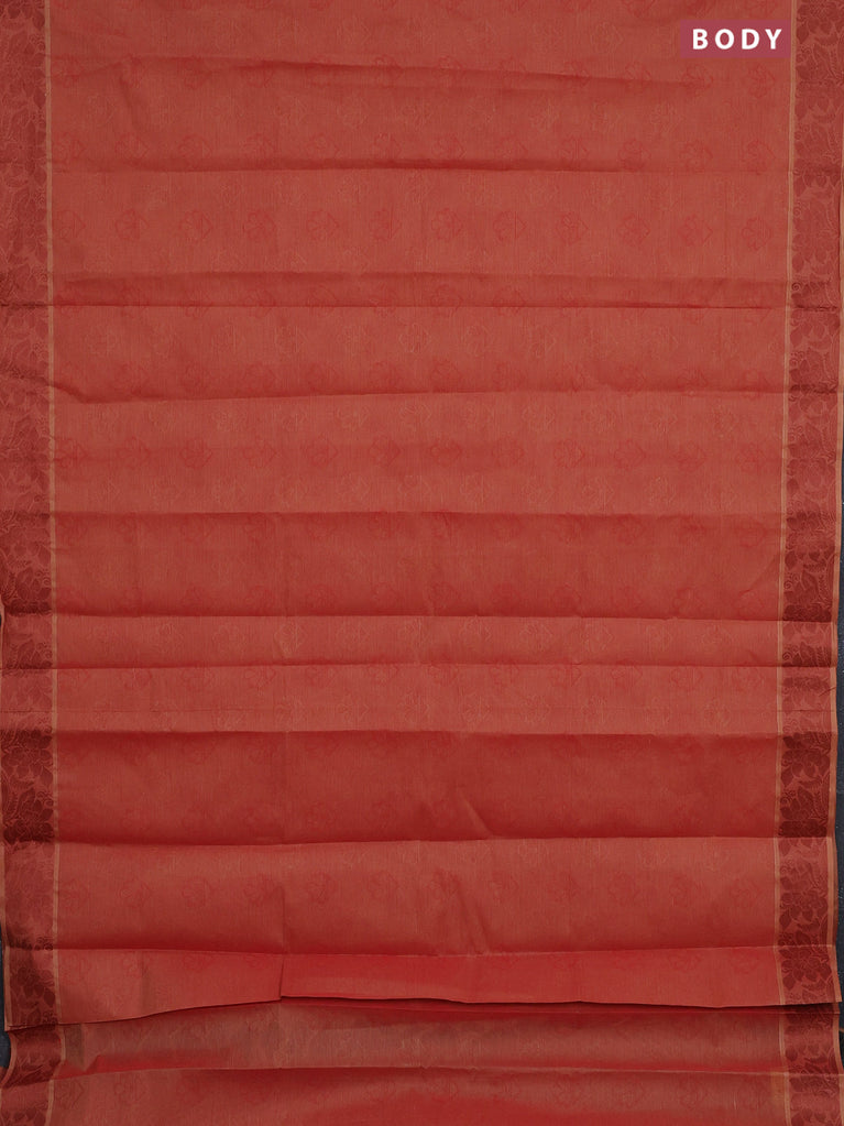 Coimbatore cotton saree rust shade and blue with allover self emboss and thread woven border