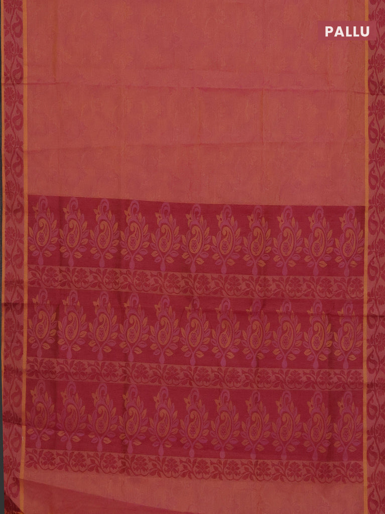 Coimbatore cotton saree rust shade and pink with allover self emboss and thread woven border