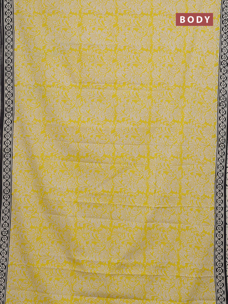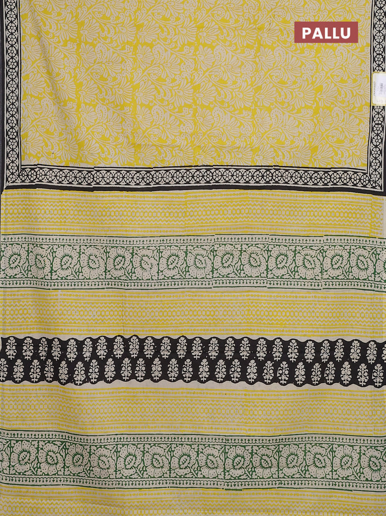 Jaipur cotton saree yellow and black with allover prints and printed border