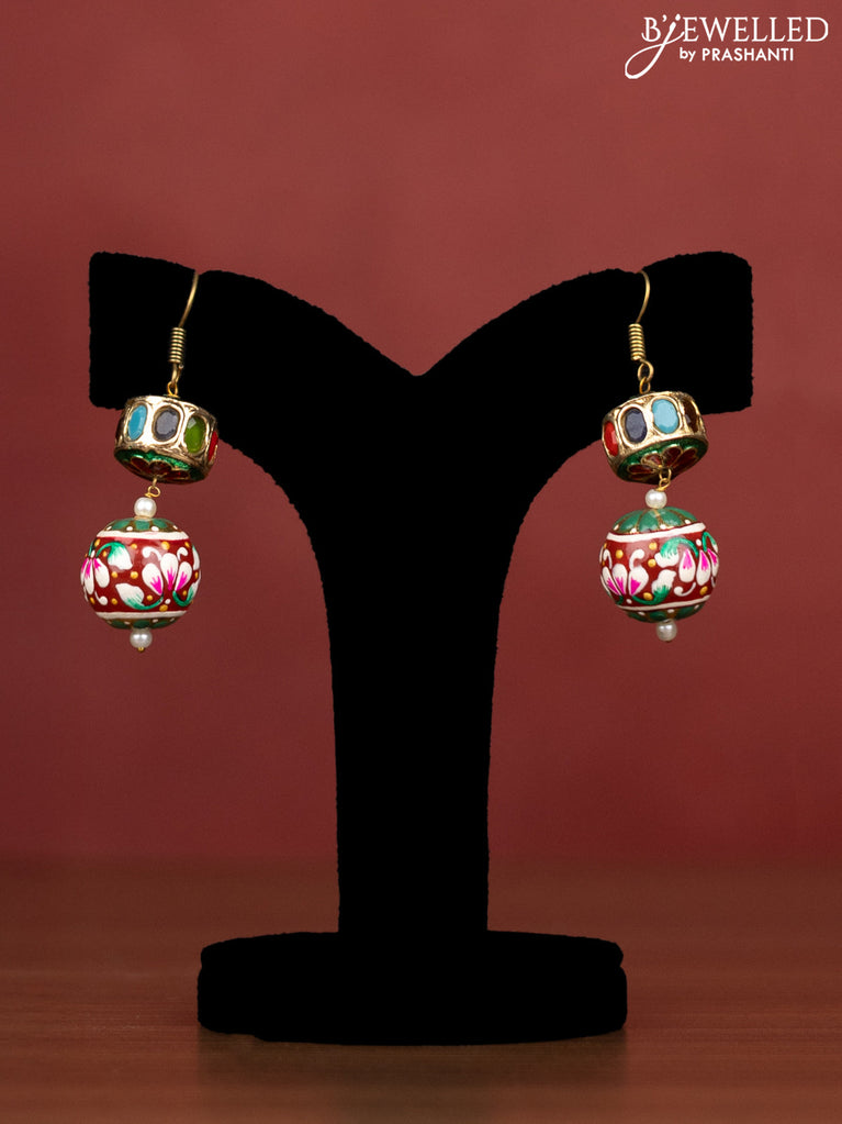 Jaipur multilayer beaded maroon necklace with meenakari pendant and pearl hangings