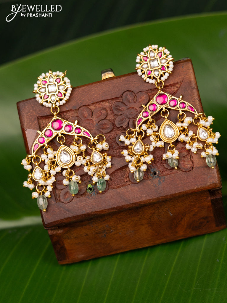 Antique screw type earrings with jadau kundan stones and pearl & golden beads hanging