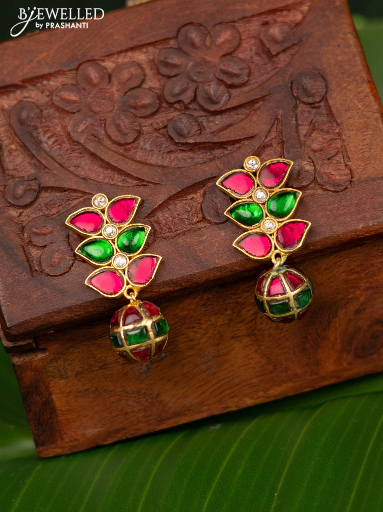 Antique screw type jhumka floral design with jadau kundan stones and pearl hangings
