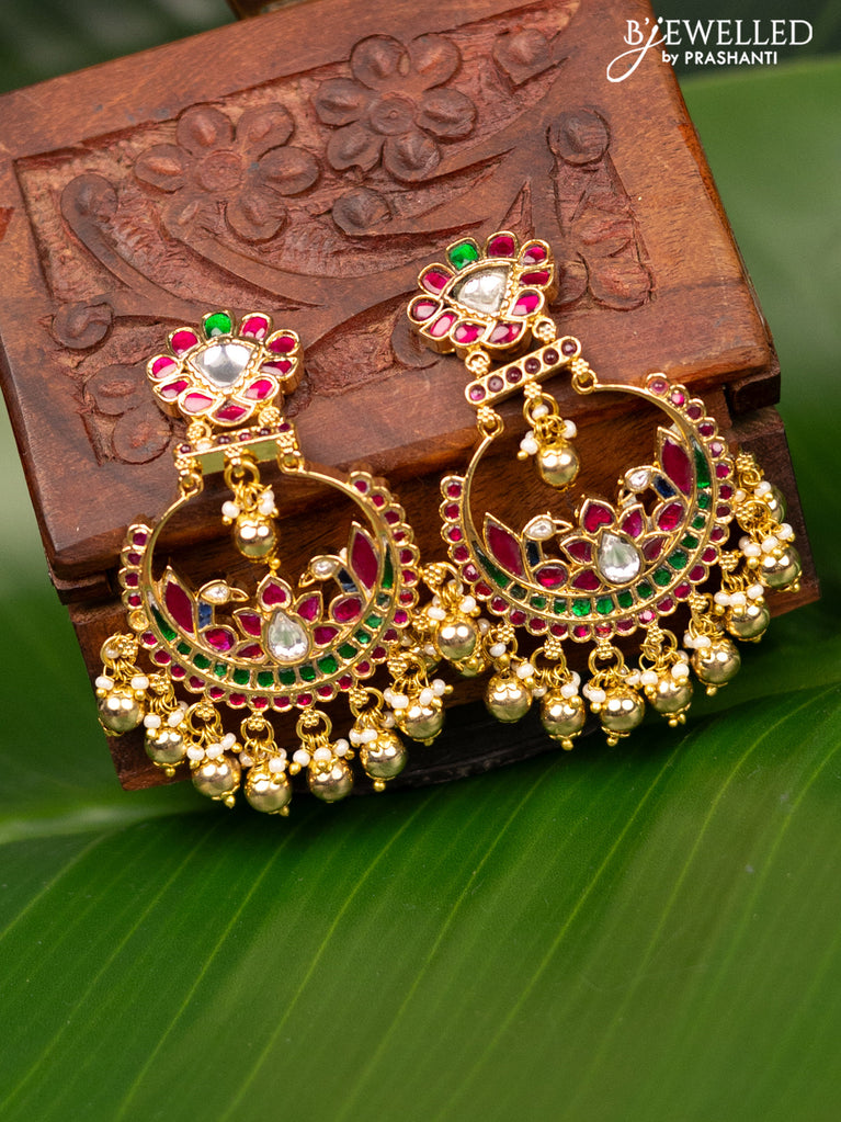 Antique screw type earrings chandbali design with jadau kundan stones and pearl & golden beads hanging
