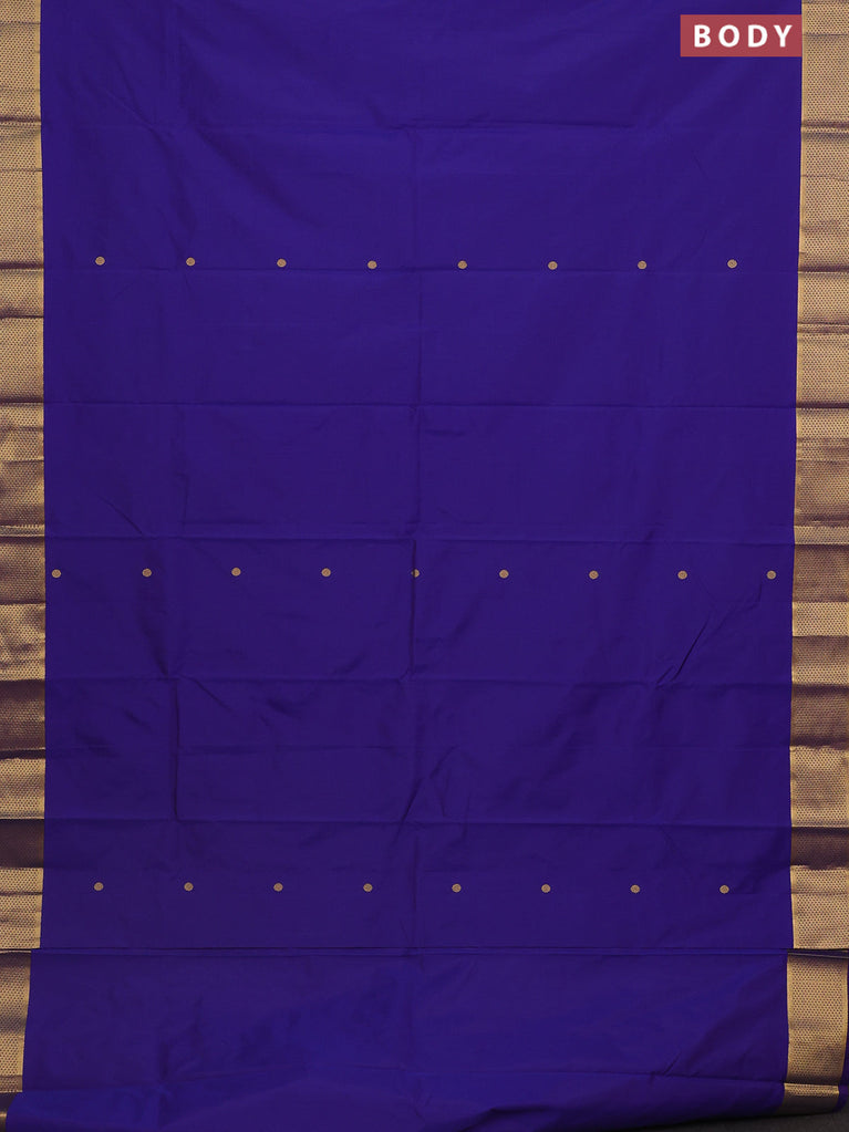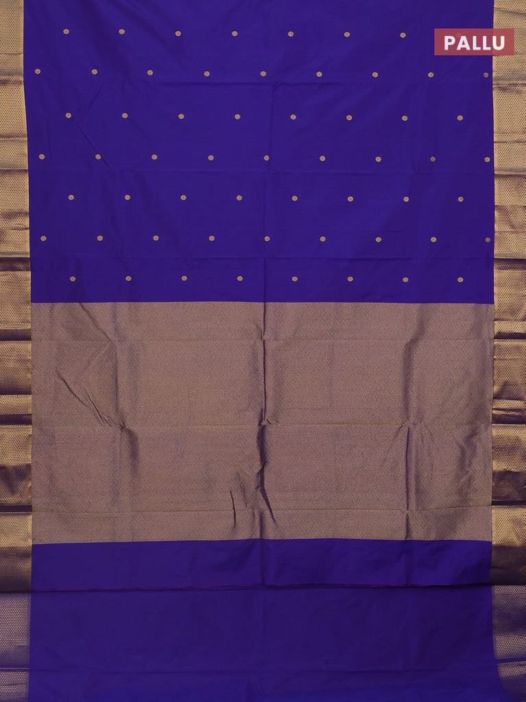 Arani semi silk saree blue with zari woven buttas in borderless style