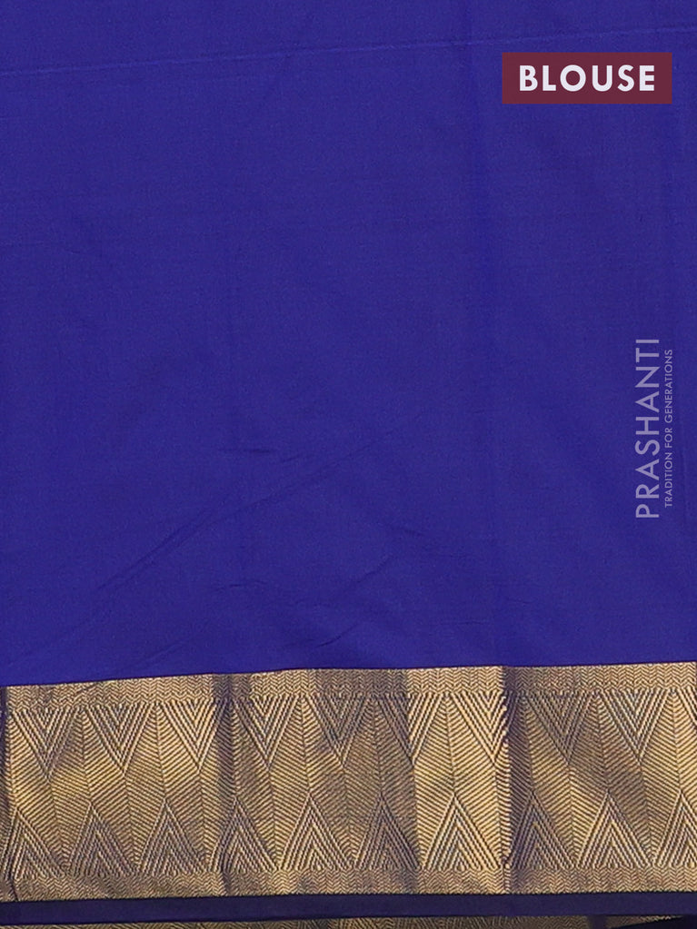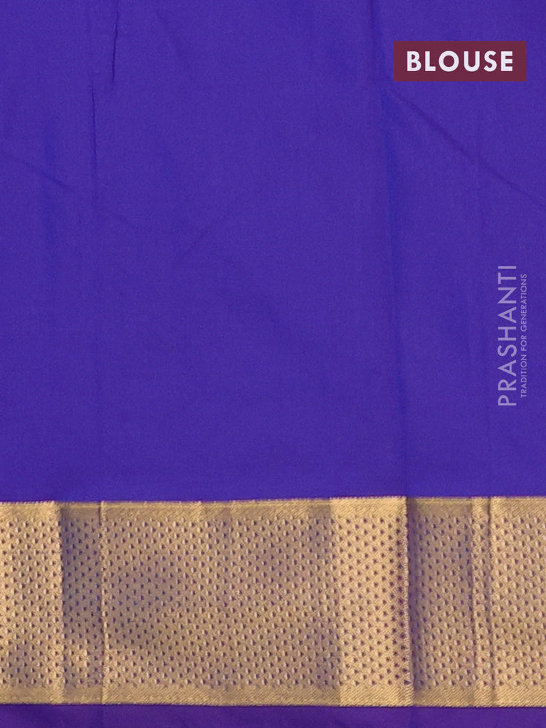 Arani semi silk saree blue and dual shade of violet with allover copper zari weaves and zari woven border
