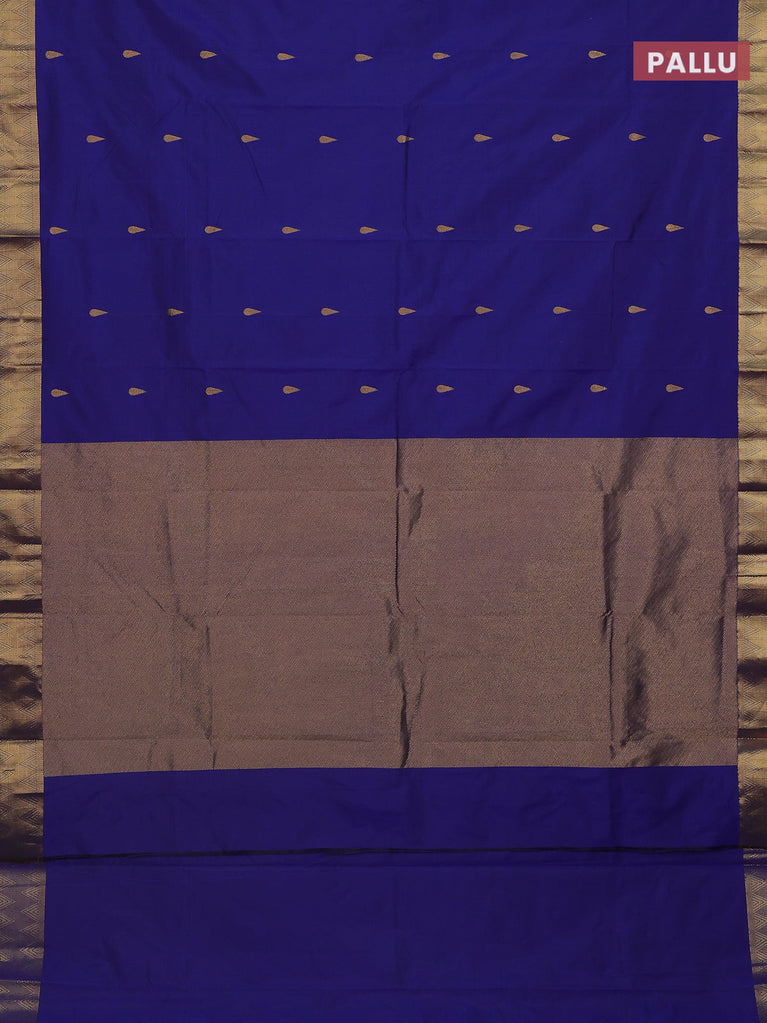 Arani semi silk saree blue shade with copper zari woven buttas in borderless style
