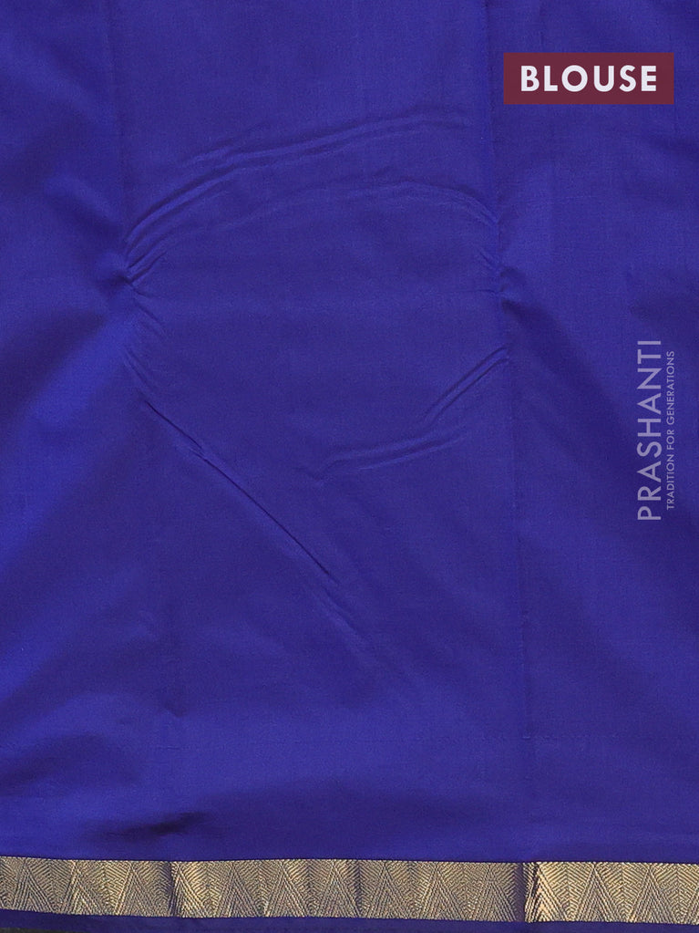 Arani semi silk saree blue shade and green with zari woven buttas and paisley zari woven butta border