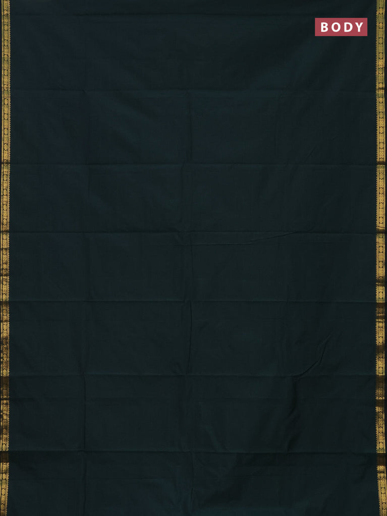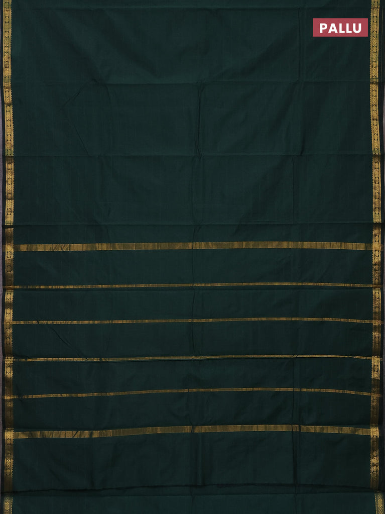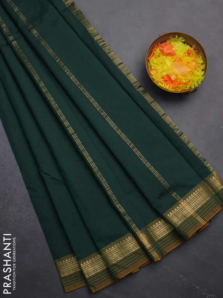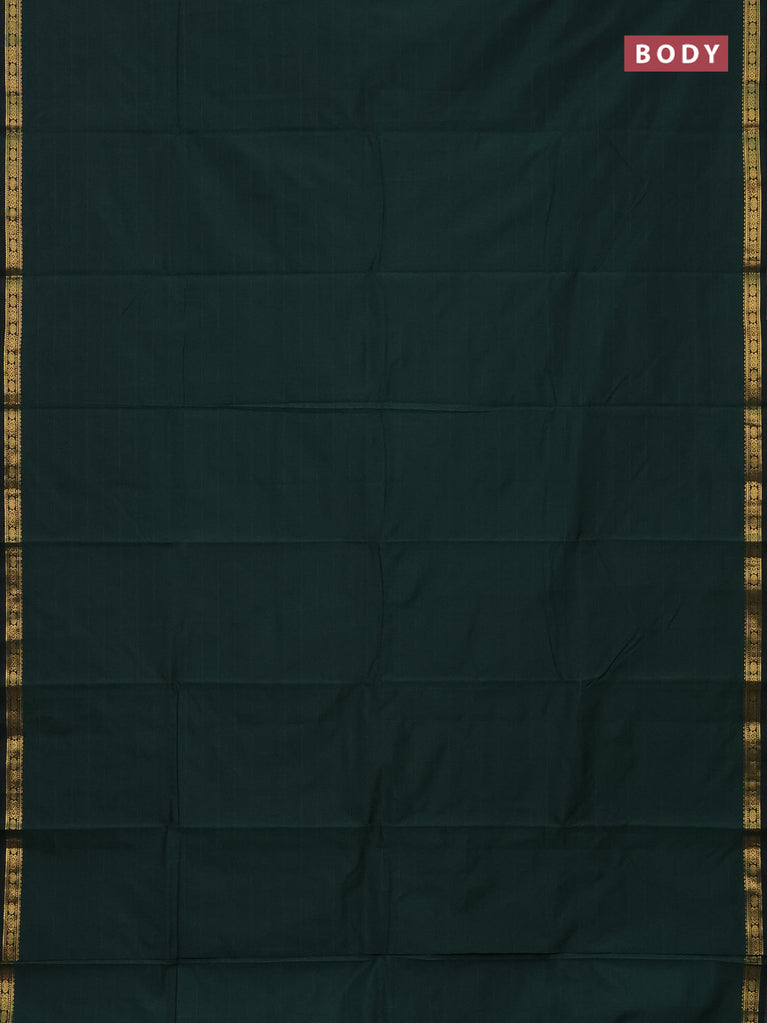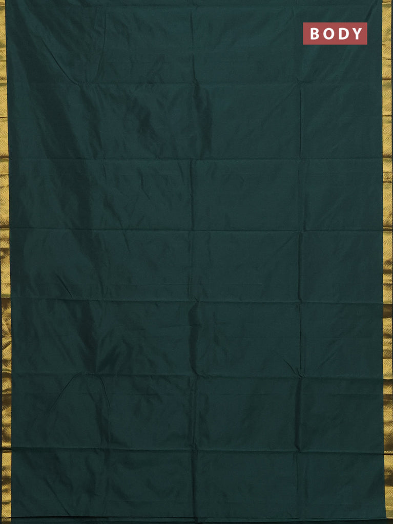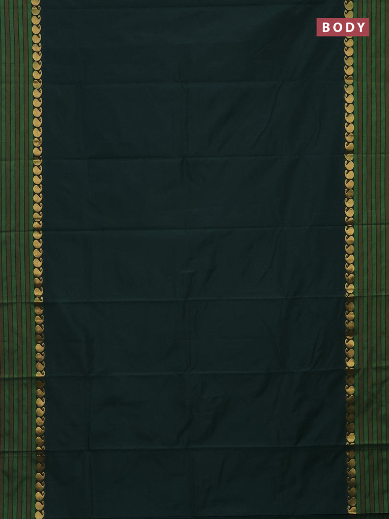 Arani semi silk saree bottle green with plain body and small zari woven border