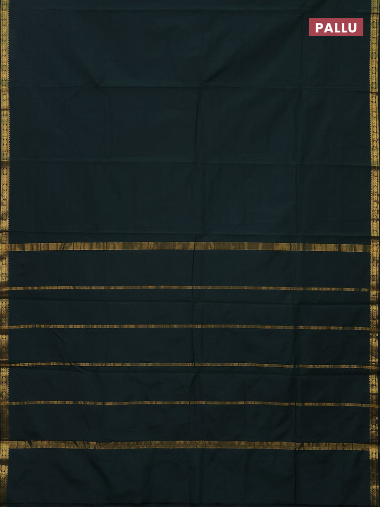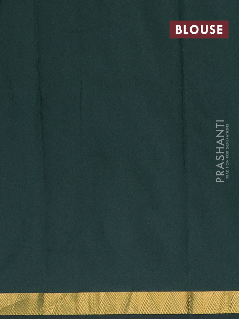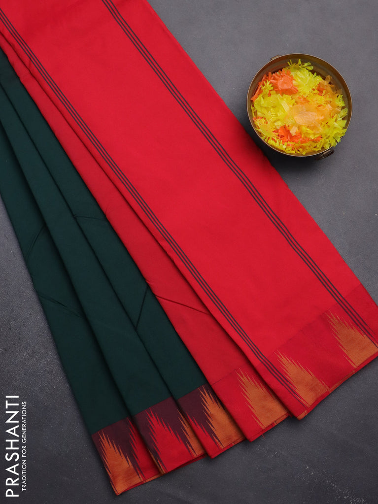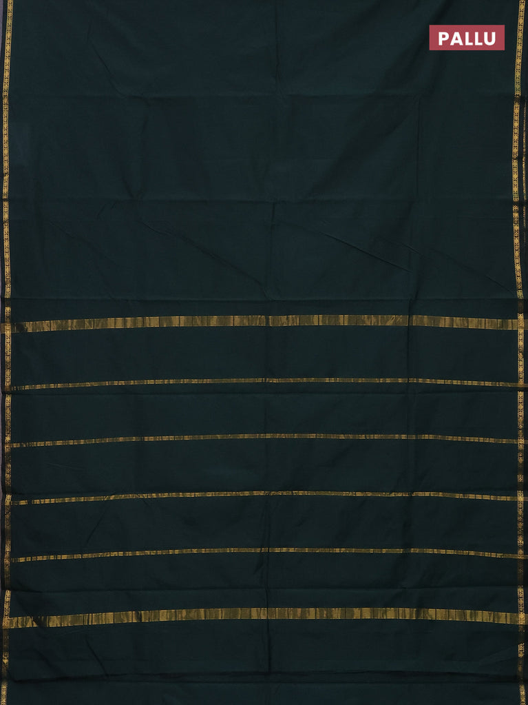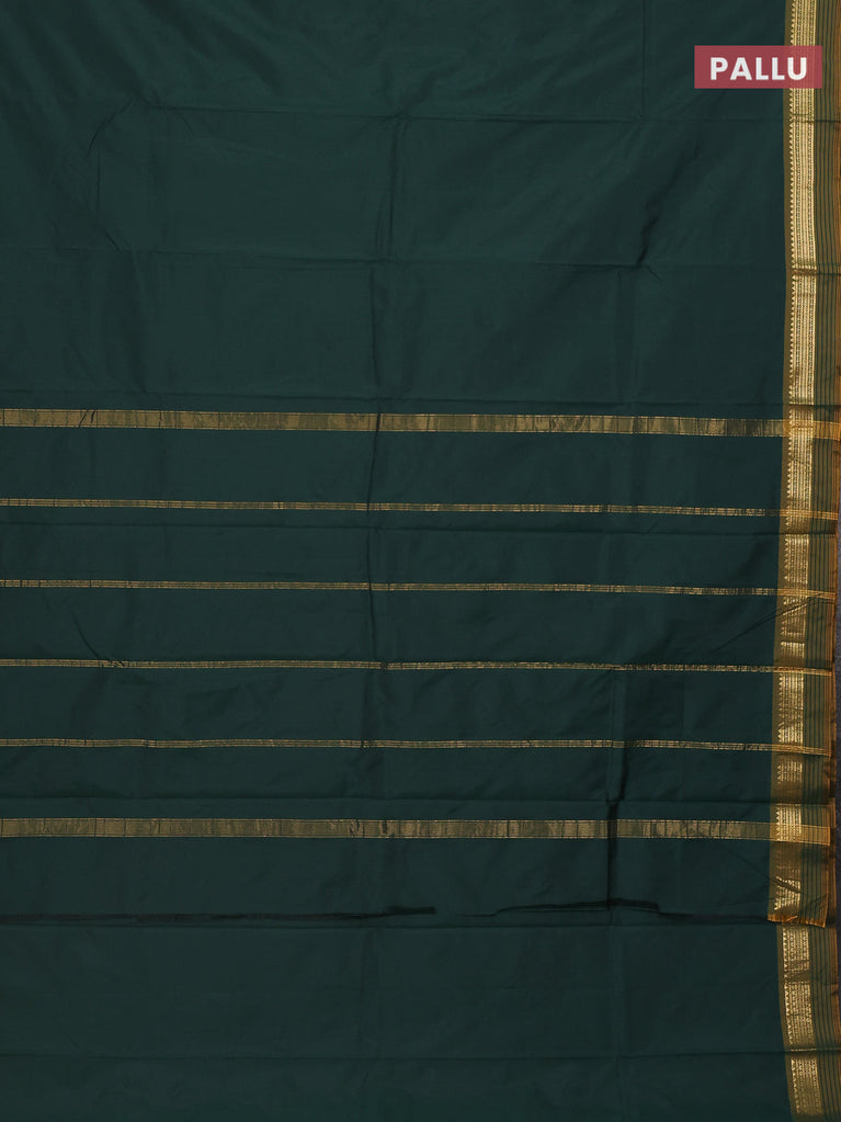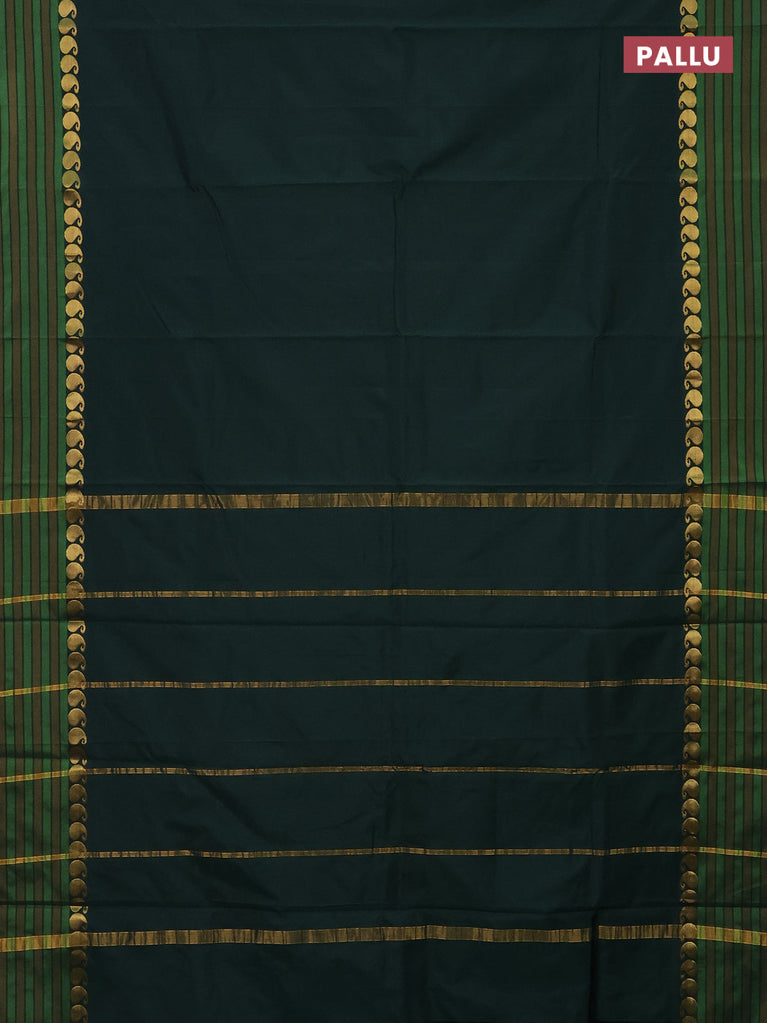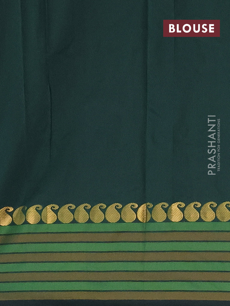 Arani semi silk saree bottle green with plain body and small zari woven border