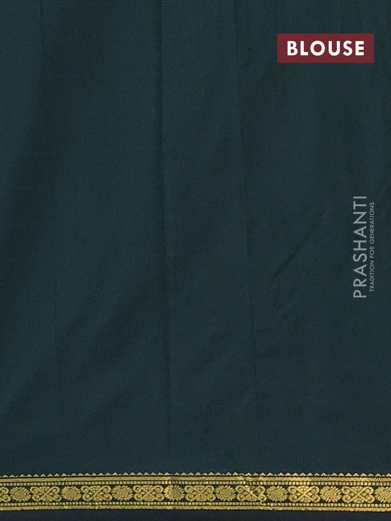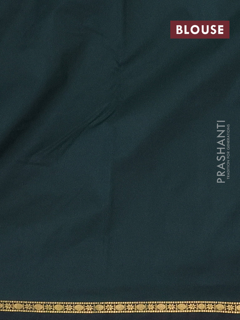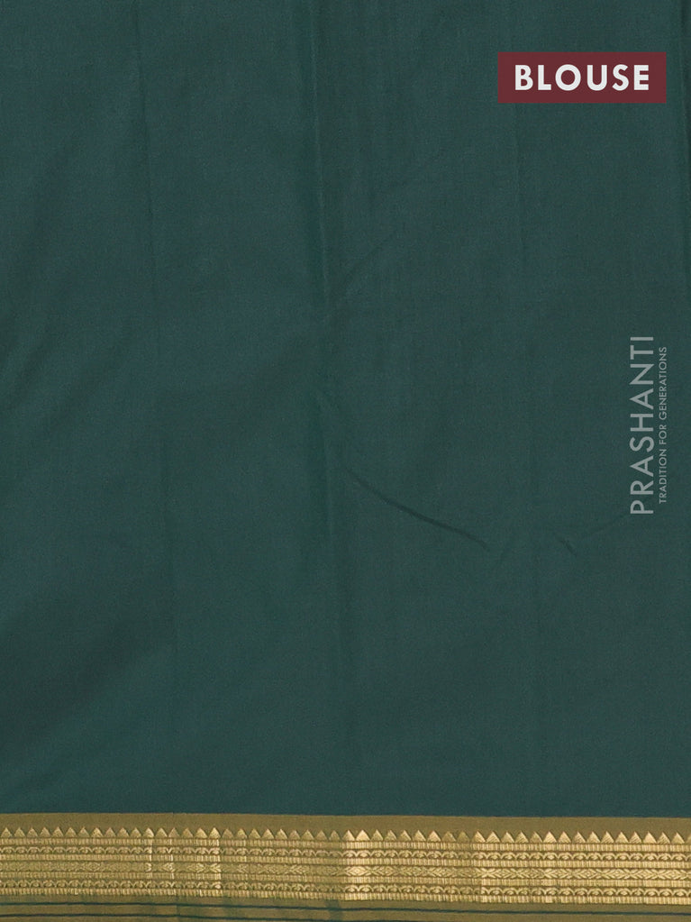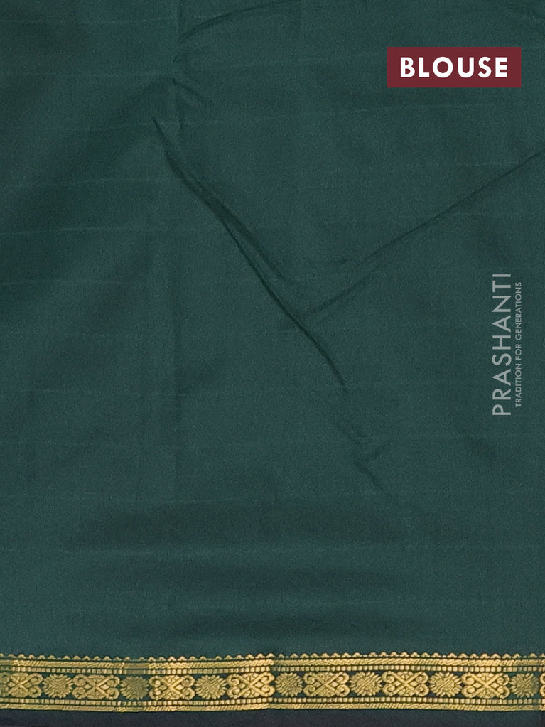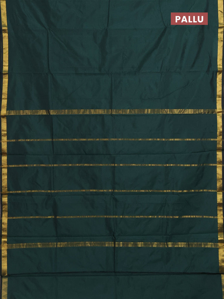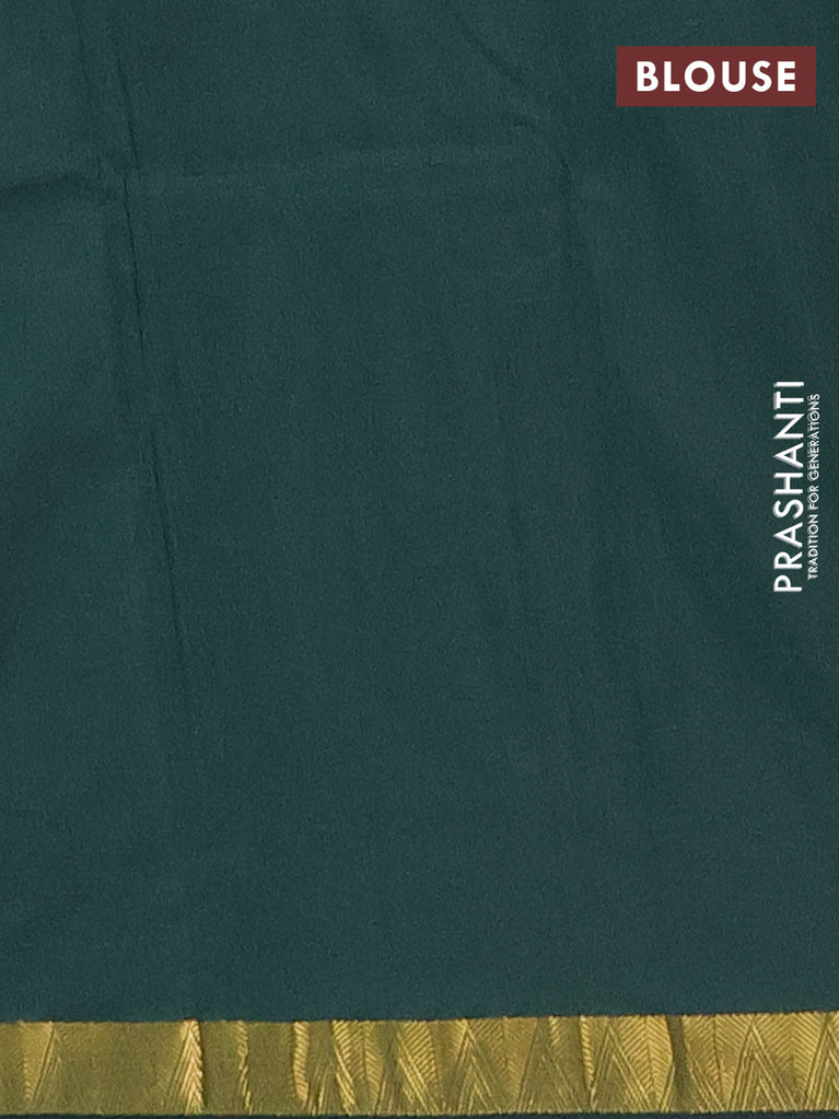 Arani semi silk saree bottle green with plain body and small zari woven border