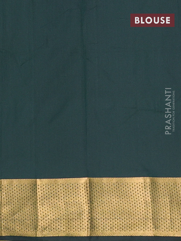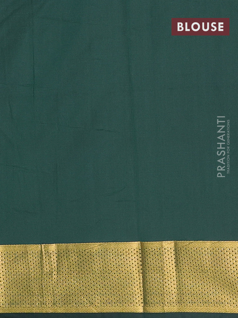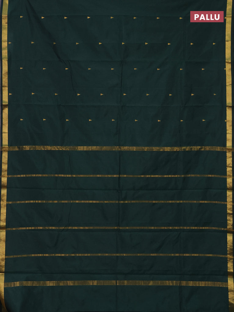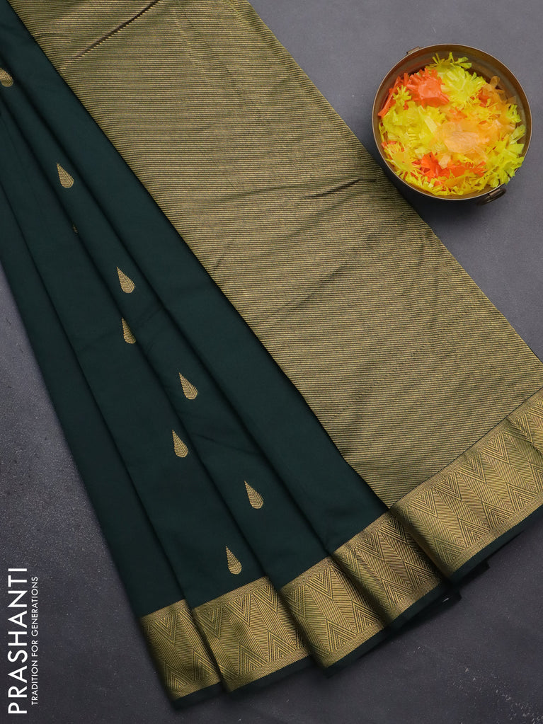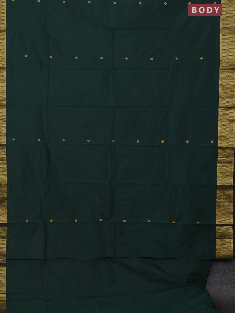 Arani semi silk saree bottle green with zari woven thilak buttas and zari woven border