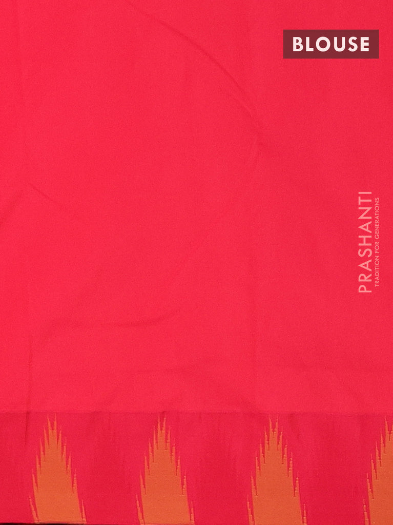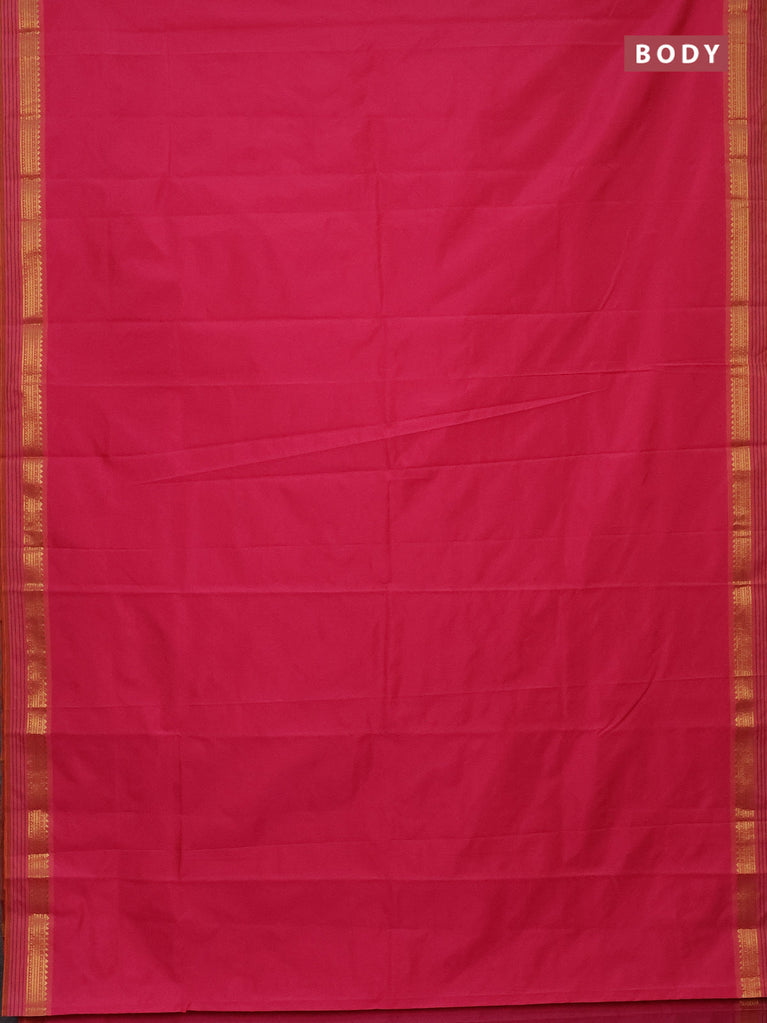 Arani semi silk saree bottle green and pink with plain body and temple design border