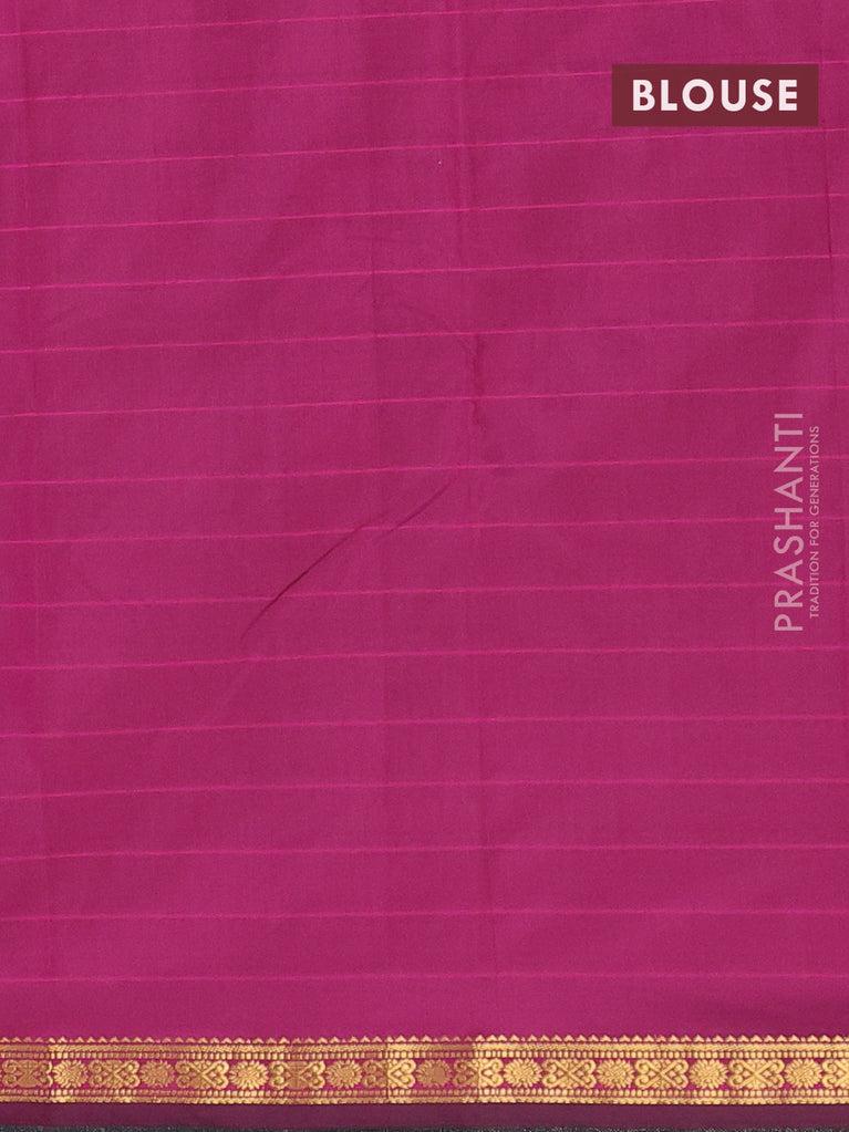 Arani semi silk saree dark magenta pink and green with allover silver zari weaves and piping border