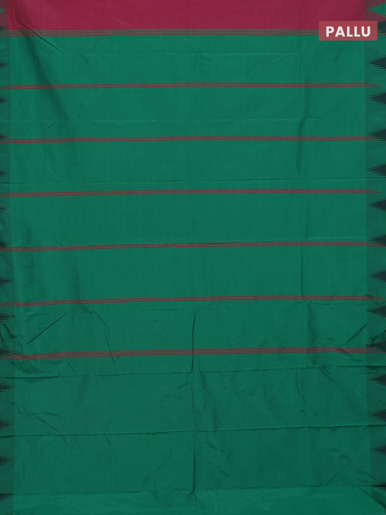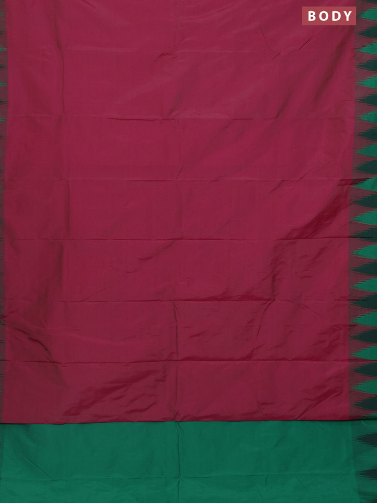 Arani semi silk saree dark magenta pink and green with plain body and temple design border