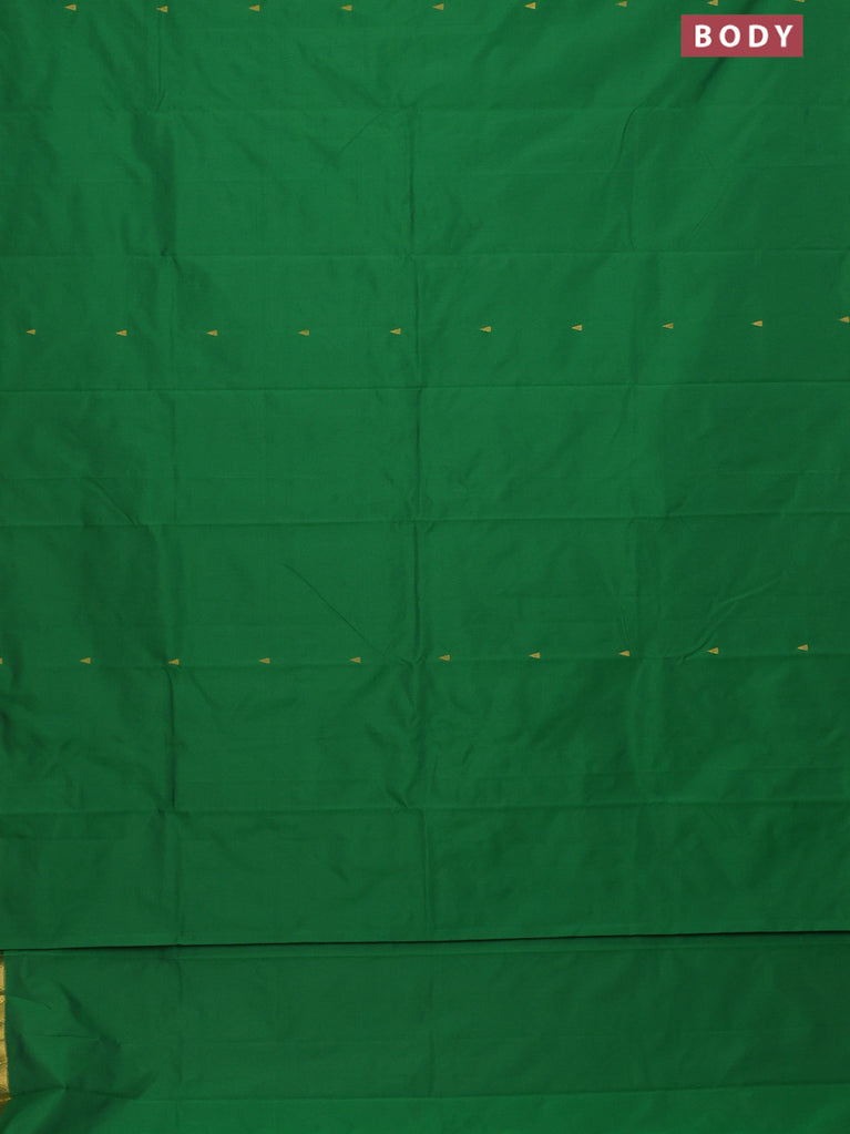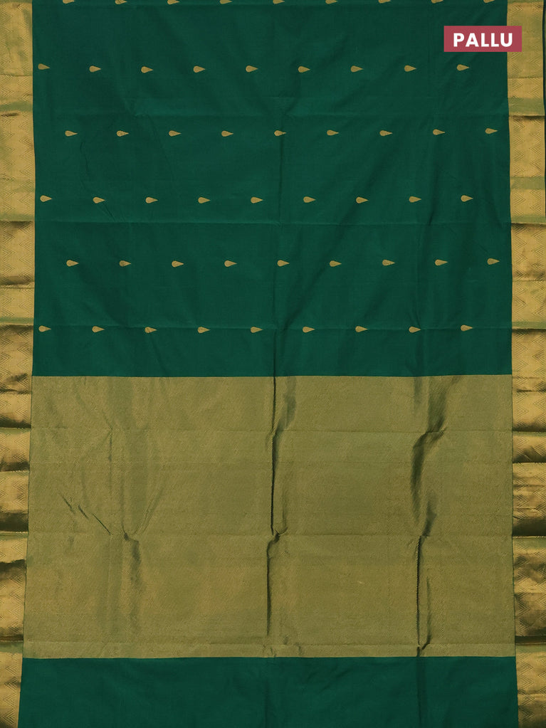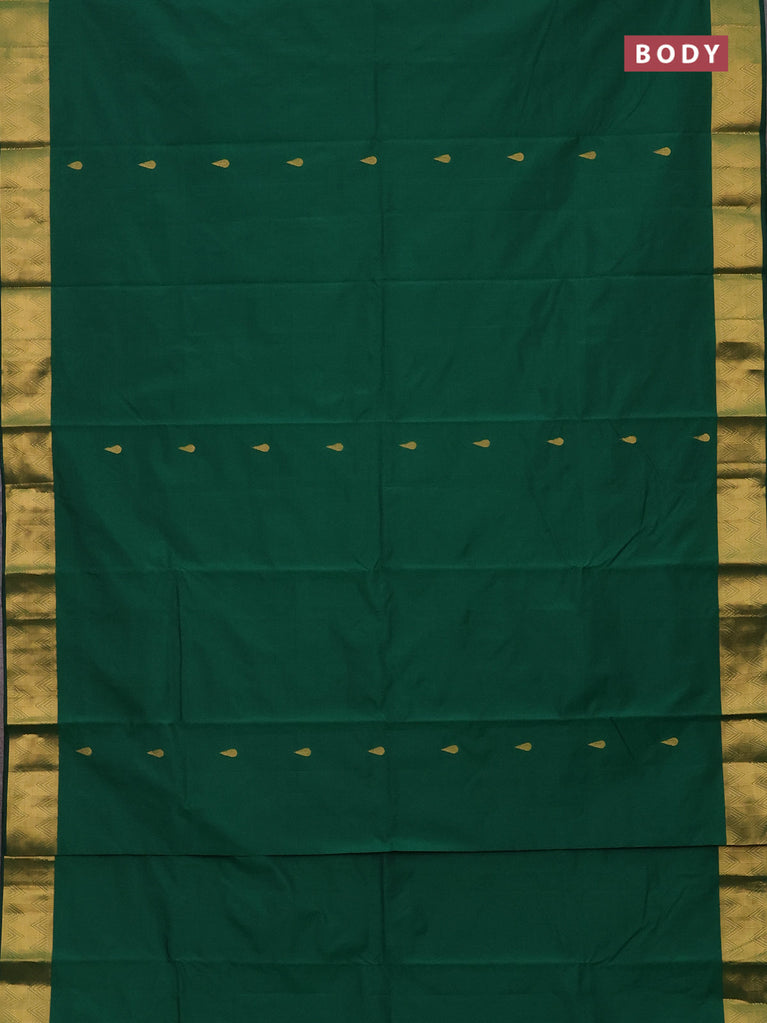 Arani semi silk saree green with zari woven buttas and paisley zari woven butta border