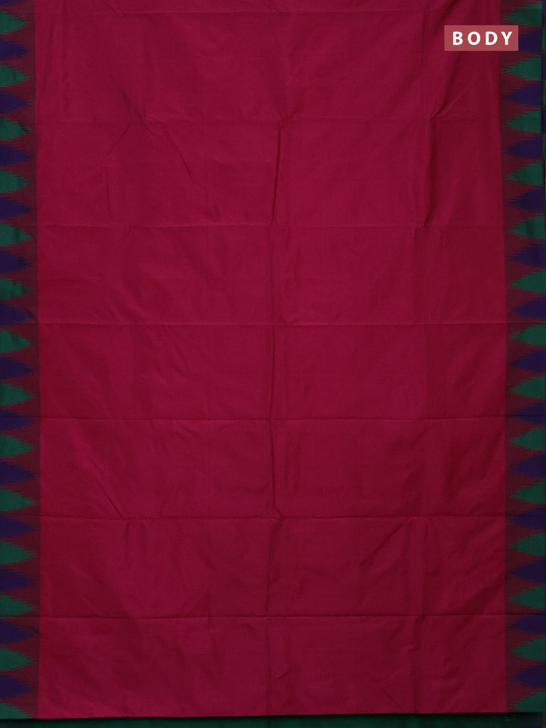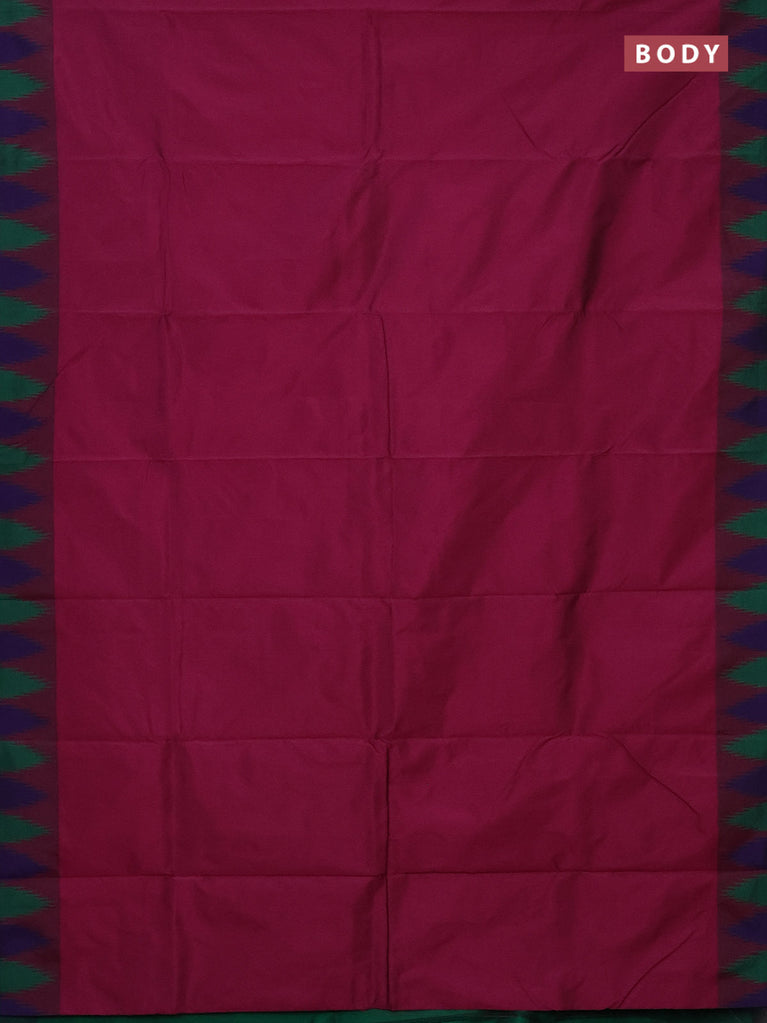Arani semi silk saree magenta pink and green with plain body and temple design border