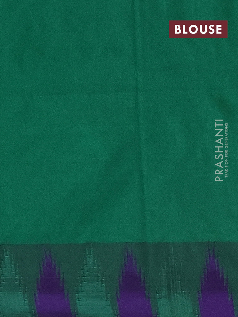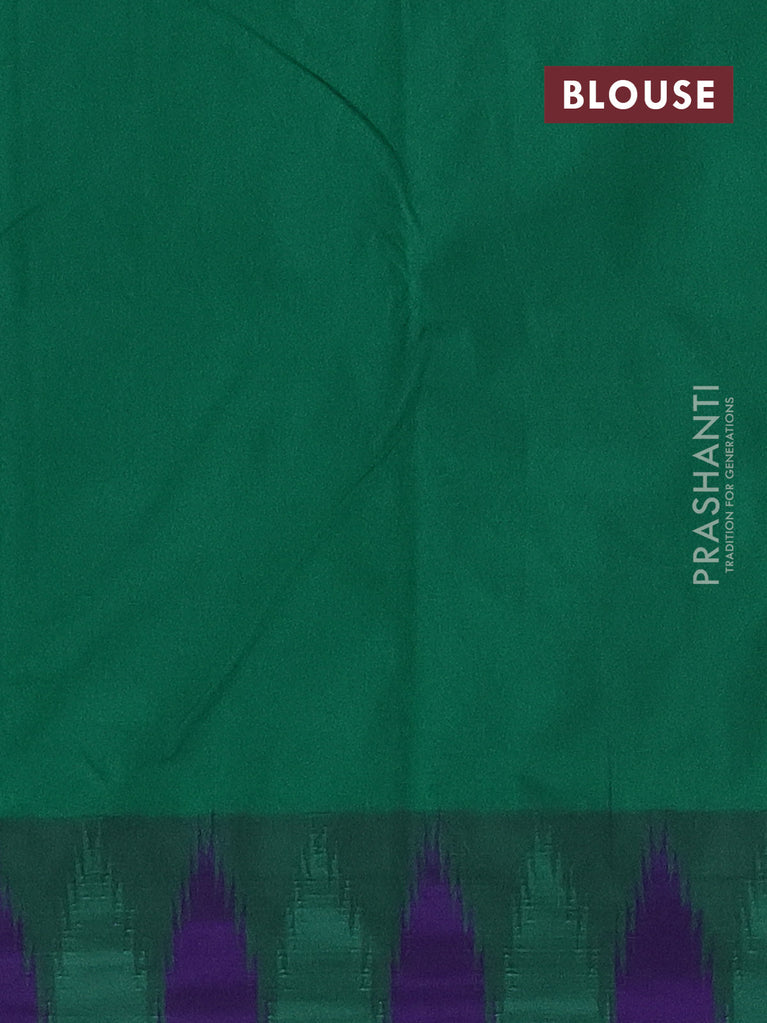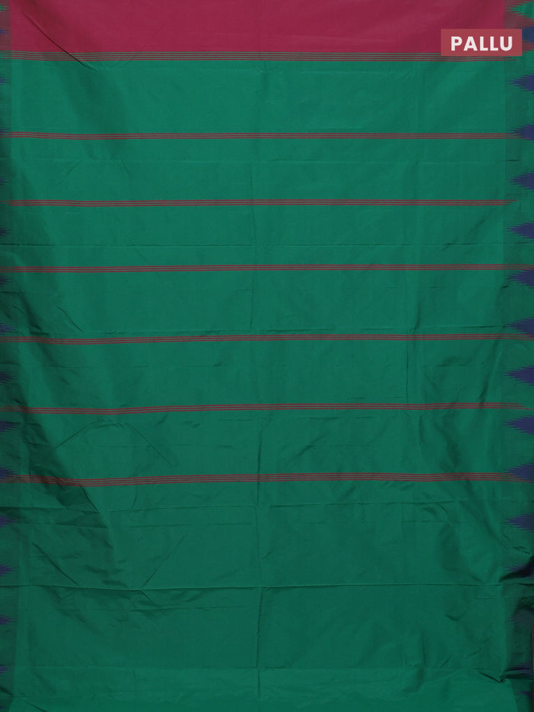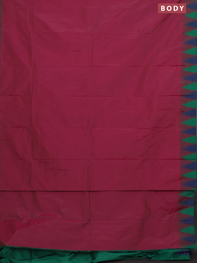 Arani semi silk saree magenta pink and green blue with plain body and temple design border
