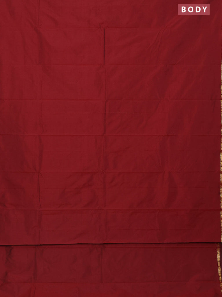 Arani semi silk saree maroon shade with plain body and small zari woven border